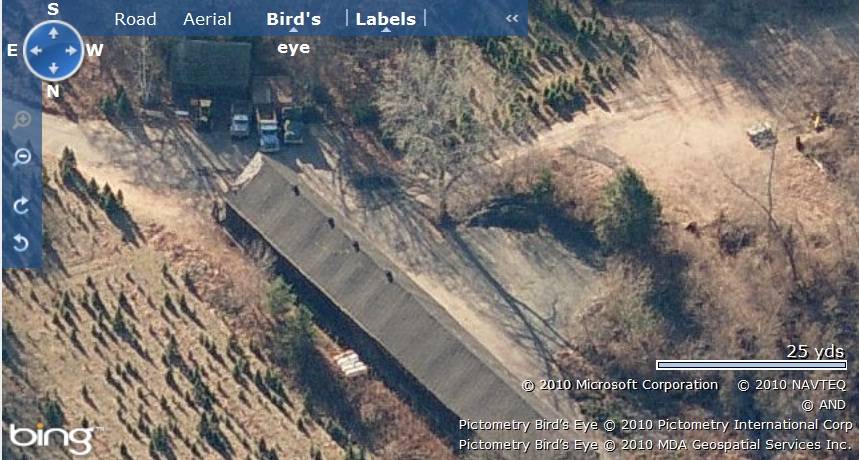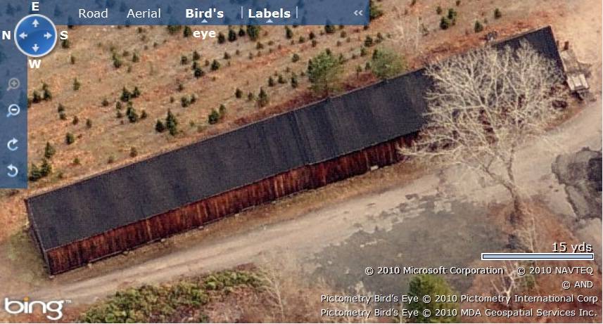Shed-I is located in the eastern most edge of the property with its ridge line running east-west. Parcels of open land can be seen towards its north and the west. Shed-II is located towards the western edge of the property, near the railway tracks. The gable-roof outbuilding can be seen towards the west of Shed-II which is surrounded by Christmas trees on all side. Shed-III is located in the western most corner of the property on the other side of the railway tracks. It is positioned is a clearing dotted by Christmas trees. Sheds-A & B are two highly dilapidated sheds located almost at the center of the property, towards the north. Shed-A is towards the west while Shed-B is towards the north-east, separated by Christmas tree farm land. The ridge lines of both the sheds run east-west, parallel to each other.