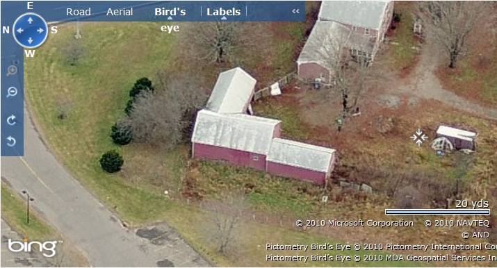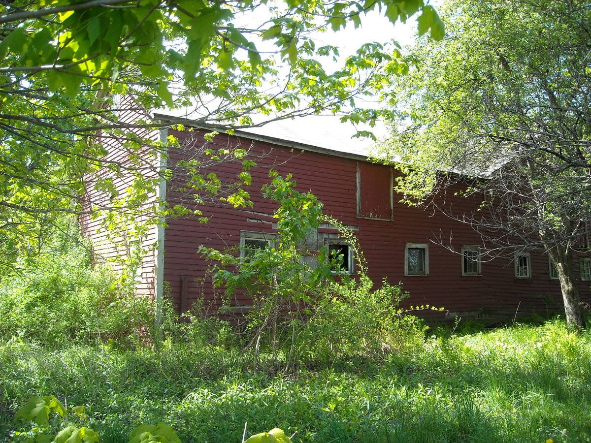 The barn is visible from the road and not accessible to the public. It is in a commercial area and the barn and house are currently vacant. It is likely it will be converted to commercial use. Built in the late 1800's with concrete and clapboard with a post and beam frame. The gabled roof has asphalt shingles. Typology is English. The original use is not know but it was converted to a stable with stalls on both sides of a wagon floor in the 1970's. A fourth bay and a "shop" was added later probably in the same era. The shop is on the east side.