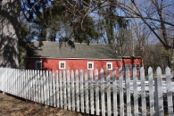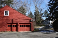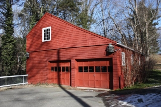 This barn was built with the house, in about 1790. During the early 1800's this barn was used as a station on the stagecoach line where fresh horses were obtained. The barn is sided with shingles, painted red, with wood shingles on the roof. It has been altered with two garage doors in the front. A chicken coop addition on the back of the barn has vertical siding, decorative trim and wood shingled roof. [Source: Diane Lindsay]