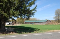 These three sheds are well to the the south of the house they are associated with in this 88.79 acre farming complex. The ridge-line of the house is perpendicular to South Grand Street. Behind and to the west of the house is a New England bank barn. To the north of the barn is a eave-entry barn. North of that are five green houses. A number of small sheds are scattered throughout the property. To the northwest of the barn is a thirteen bent, two aisle tobacco shed with a series of large doors along the east eave side of the building with the other side of the building vented by vertical boards. West of the tobacco shed is a small pond. To the west of shed I is a four bay garage. To the north are large tracts of open space. The area surrounding the lot is residential, active agriculture, open space and woodland.