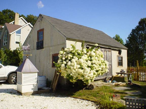Circa mid 1800s, this English style bank barn has post & beam construction. The only known remaining blacksmith shop in Monroe was originally at the corner of Barn Hill Road and Israel Hill Road and moved to this farm. It has a great weather vane on top of the cupola. This farm was part of a large farm owned by the Shelton family which borders on Shelton Road, CT Route 110. Also see Part 2/2 : http://www.connecticutbarns.org/index.cgi/39809.