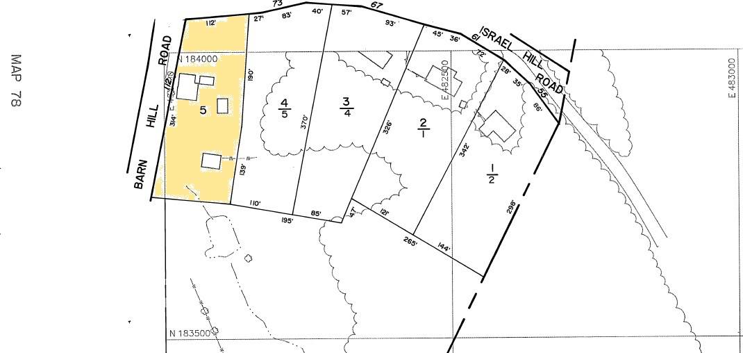 The 1 acre property, Account number – 07800500 and Map-Block-Lot number - 078 005 00, is a corner plot located towards the east of Barn Hill Road and the south of Israel Hill Road, bordering the town limits of Monroe and Shelton. The property is situated in a predominantly residential area with the surrounding plots separated by dense woodland. Residential plots can be seen towards the east, south and the west of the property across Barn Hill Road while dense woodland covers the area towards the southeast and the north, across Israel Hill Road. A pond can be seen towards the immediate southeast of the property.