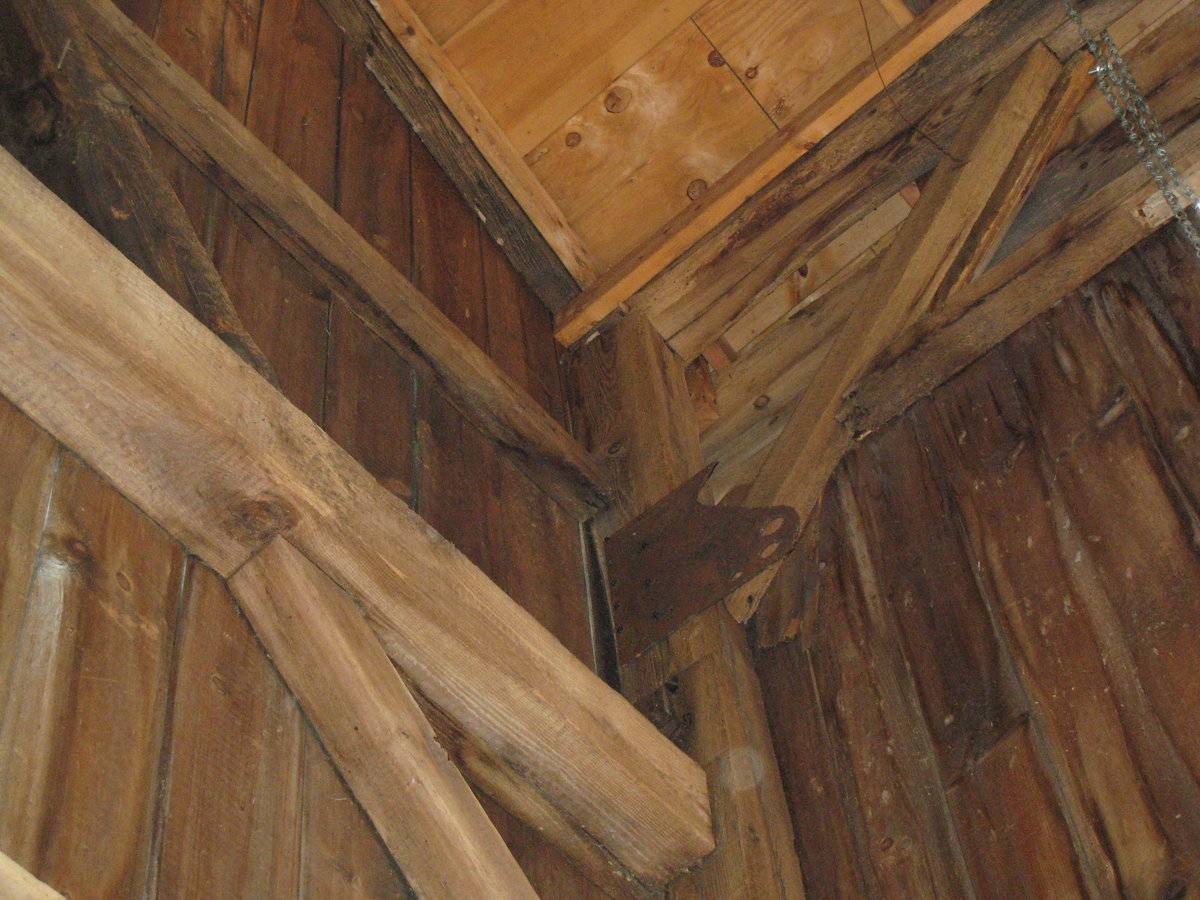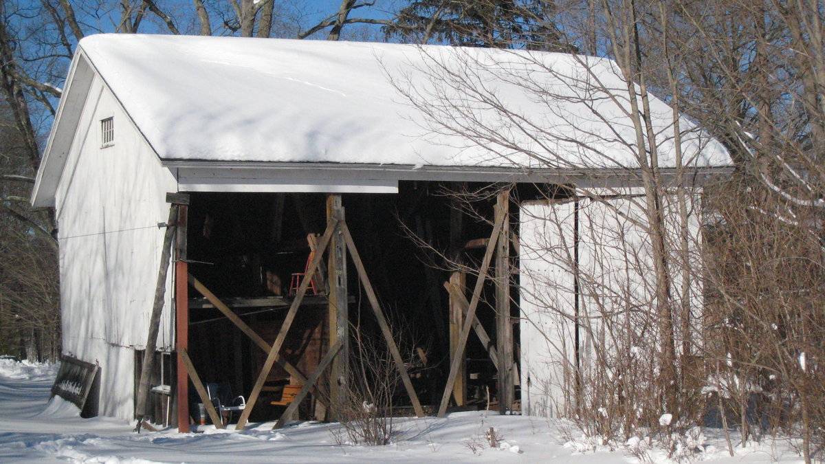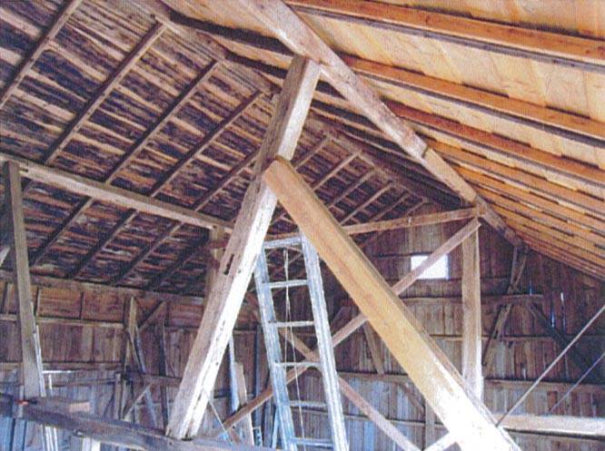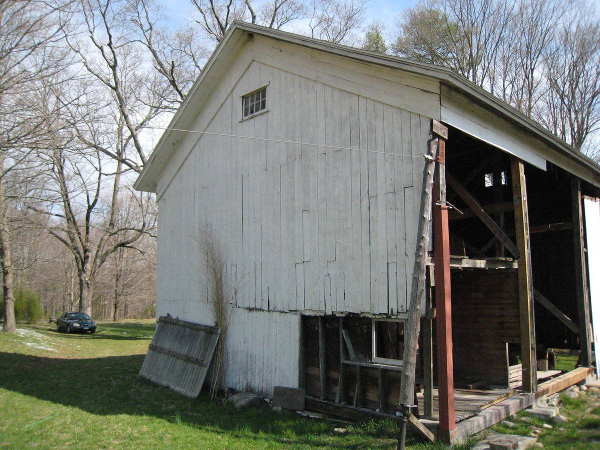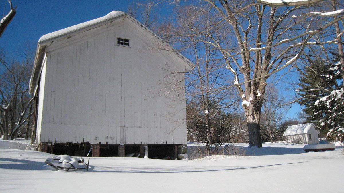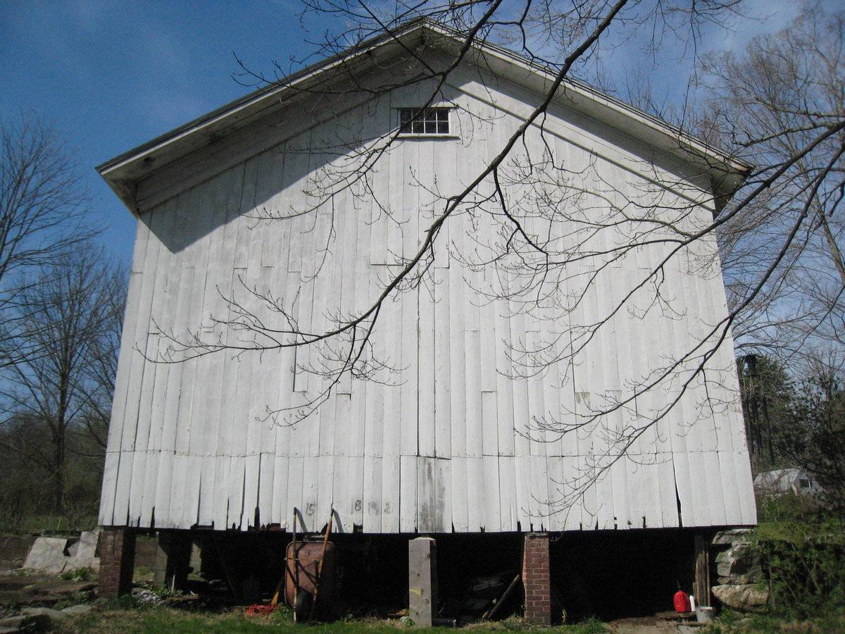The oldest barns still found in the state are called the “English Barn,” “side-entry barn,” “eave entry,” or a 30 x 40. They are simple buildings with rectangular plan, pitched gable roof, and a door or doors located on one or both of the eave sides of the building based on the grain warehouses of the English colonists’ homeland. The name “30 by 40” originates from its size (in feet), which was large enough for 1 family and could service about 100 acres. The multi-purpose use of the English barn is reflected by the building’s construction in three distinct bays - one for each use. The middle bay was used for threshing, which is separating the seed from the stalk in wheat and oat by beating the stalks with a flail. The flanking bays would be for animals and hay storage.