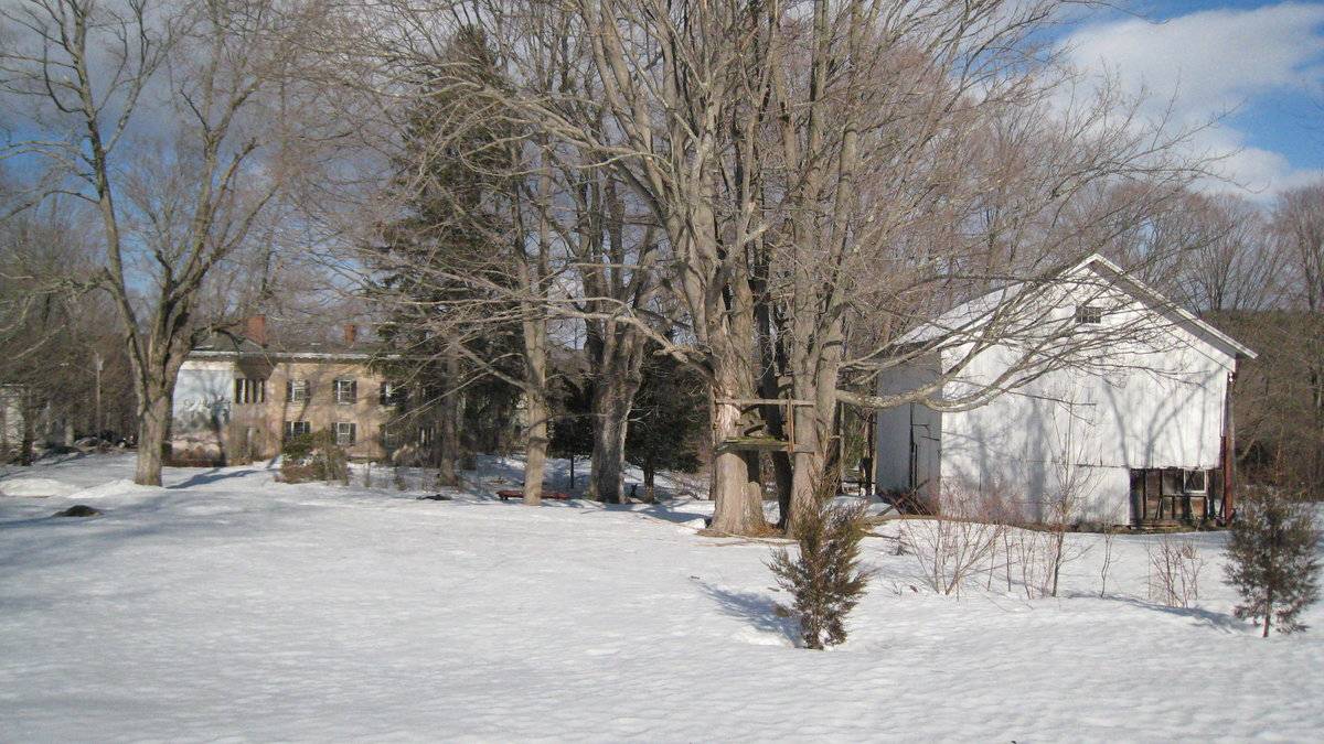 Listed on the State Register of Historic Places 3/05/2014."The barn represents a time long gone. A lot of what daily farm life really looked like in the mid 1800's has been lost, especially it's beautiful farm buildings and farm equipment. With this loss, the memories of past generations in Haddam are fading away. The residence was completed in 1841. I understand that the barn was raised at the same time. Mr. Matthews, a well known local timber framer told me that he thinks that the barn is probably even older and had been moved to its current location around 1840. It is a mortise and tenon construct with pegs and at several junctures iron rods and bolts have been placed to secure large overlap joints in the vertical chestnut beams. The barn is 40 feet long and 30 feet wide, the height I suspect is at least 35 feet. We do have many white oak beams left over. My grandfather purchased the property in 1908, renovated the house for two years and then married my Grandmother Mable Clark in 1910. The home has been in my family ever since. Once when I was working at night the lamps were on and my mother said it made her happy in that it reminded her of her dad that would carry an oil lamp into the barn to tend to the 13 dairy cattle that he milked for his Higganum Dairy Company, I still have several pint bottles bearing that inscription. This barn is an integral part of the house. A home is more with a barn. We are only up the hill from Higganum Center. The house is a well known structure throughout the town. Higganum, being an old Industrial village with a massive amount of water power, three large brooks, there was a lot of manufacturing of farm implements and supporting industries."– Clark Gardner "The barn is close to Route 154 (Saybrook Road), a heavily traveled, historic road between Middletown and Old Saybrook. The Haddam/Higganum portion of the road has been designated as a scenic highway. Properties like Mr. Gardner's add to that attraction. The property is just up the road from the Thankful Arnold House, the Haddam Historical Society and other historic attractions. Route 154 in Haddam is line with 18th and `19th century homes."– James F. Spallone "The barn at the Orrin Freeman House has been identified by the Haddam Historical Society as a fine example of an early English style barn. Set behind the majestic Orrin Freeman House the barn features a three-bay floor plan with central hinged doors opening to a historic threshing floor. The exterior is sheathed with vertically installed rough-sawn wide boards, while a second set of smaller hinged doors on the north-bay feature smaller vertical planks. The building rest on a granite foundation. The barn most likely dates from the first half of the 19th century and is clearly show in the 1881 birds-eye view map of Higganum. Orrin Freeman who built the house in 1841 was a farmer and operated the largest lumber mill in Middlesex County." – Elizabeth Hart Malloy Recipient of 2010 Barns Grant