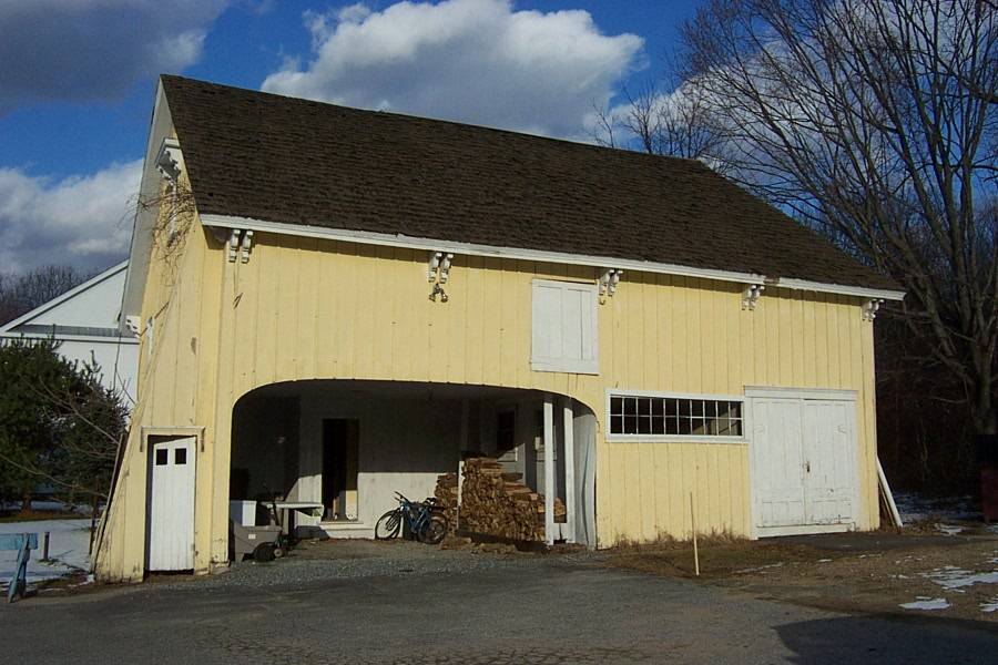 Until the 1830s, the horses used for riding and driving carriages were often kept in the main barn along with the other farm animals. By the 1850s, some New England farmers built separate horse stables and carriage houses. Early carriage houses were built just to shelter a carriage and perhaps a sleigh, but no horses. The pre-cursor to the twentieth-century garage, these outbuildings are distinguished by their large hinged doors, few windows, and proximity to the dooryard. The combined horse stable and carriage house continued to be a common farm building through the second half of the nineteenth century and the first decade of the twentieth century, until automobiles became common. Elaborate carriage houses were also associated with gentlemen farms and country estates of the late 19th and early 20th centuries. Another form of carriage barn, the urban livery stable, served the needs of tradespeople.