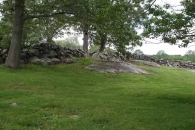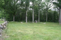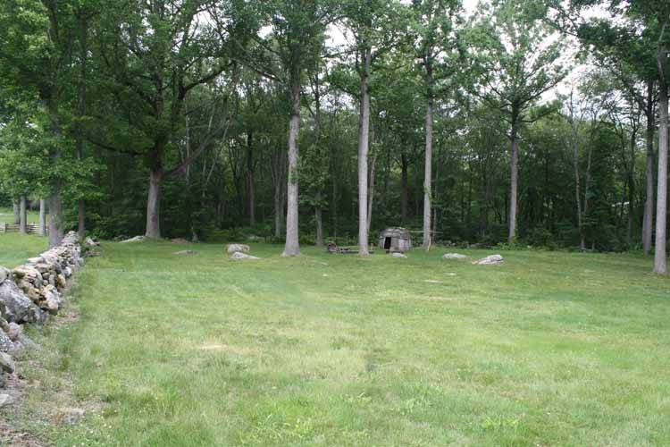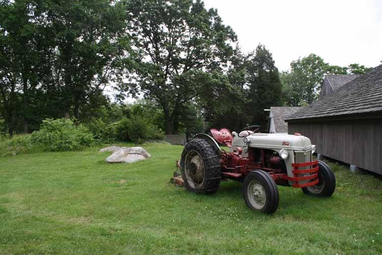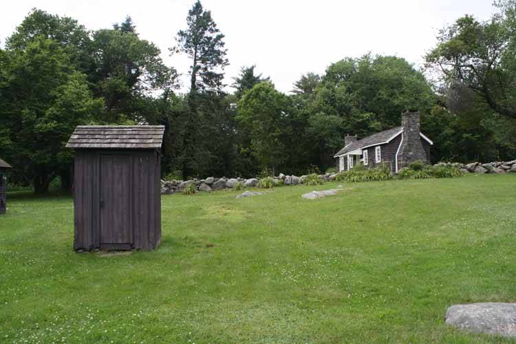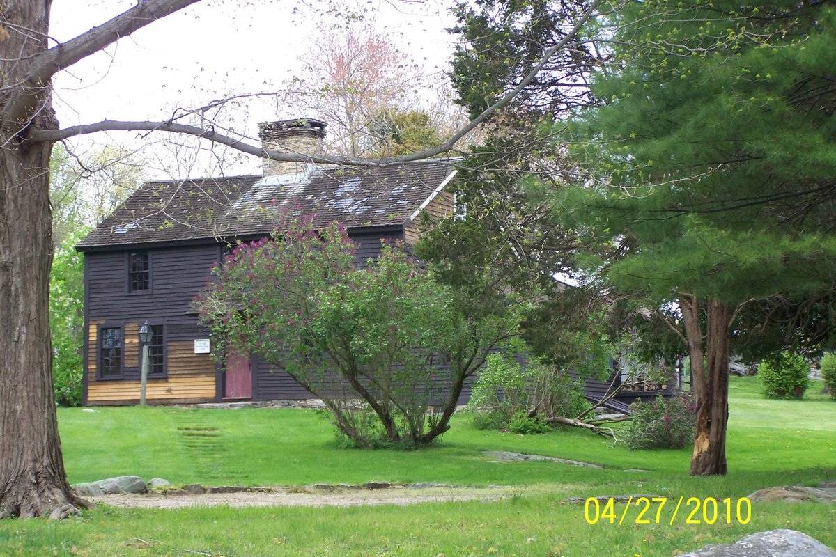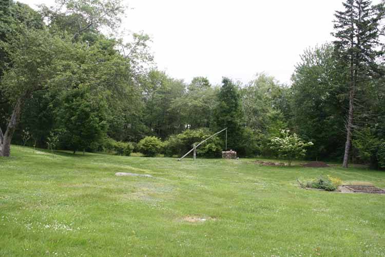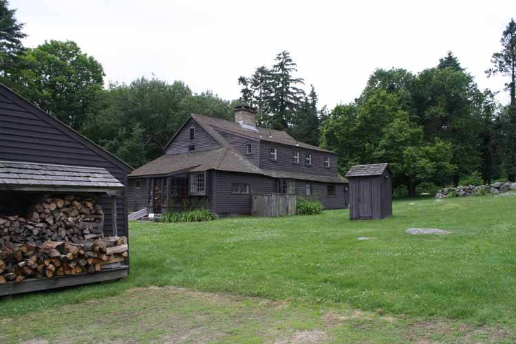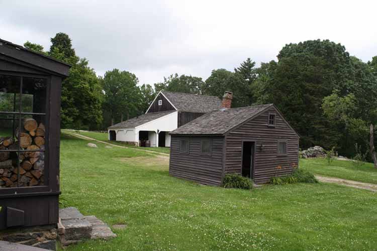 The barn sits northeast of the house in a lot bordered by a stone wall. The lot also has two sheds, an outhouse and what appears to be a saltbox-roofed barn towards the rear of the lot. The house is centered in the lot, leaving open space and wooded areas all around. A small pond is east of the house. Northwest of the house on the other side of the stone wall is a cottage with features similar to the house.