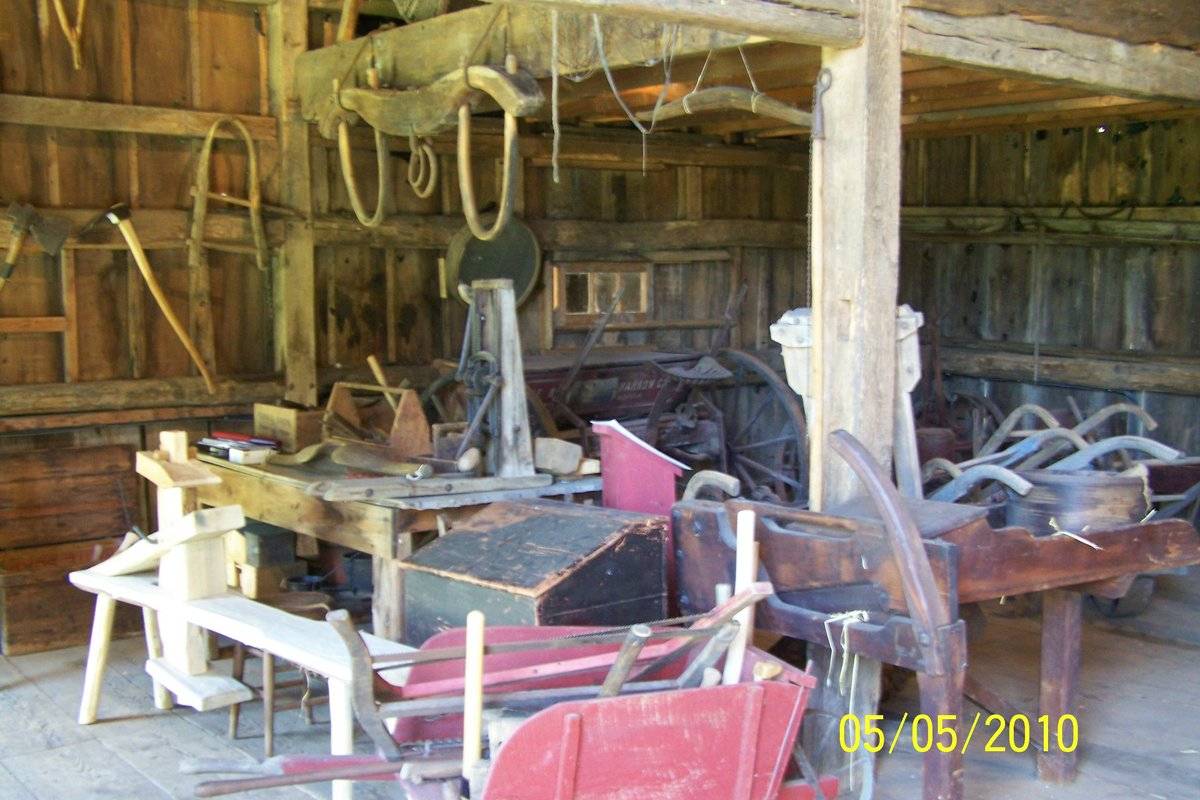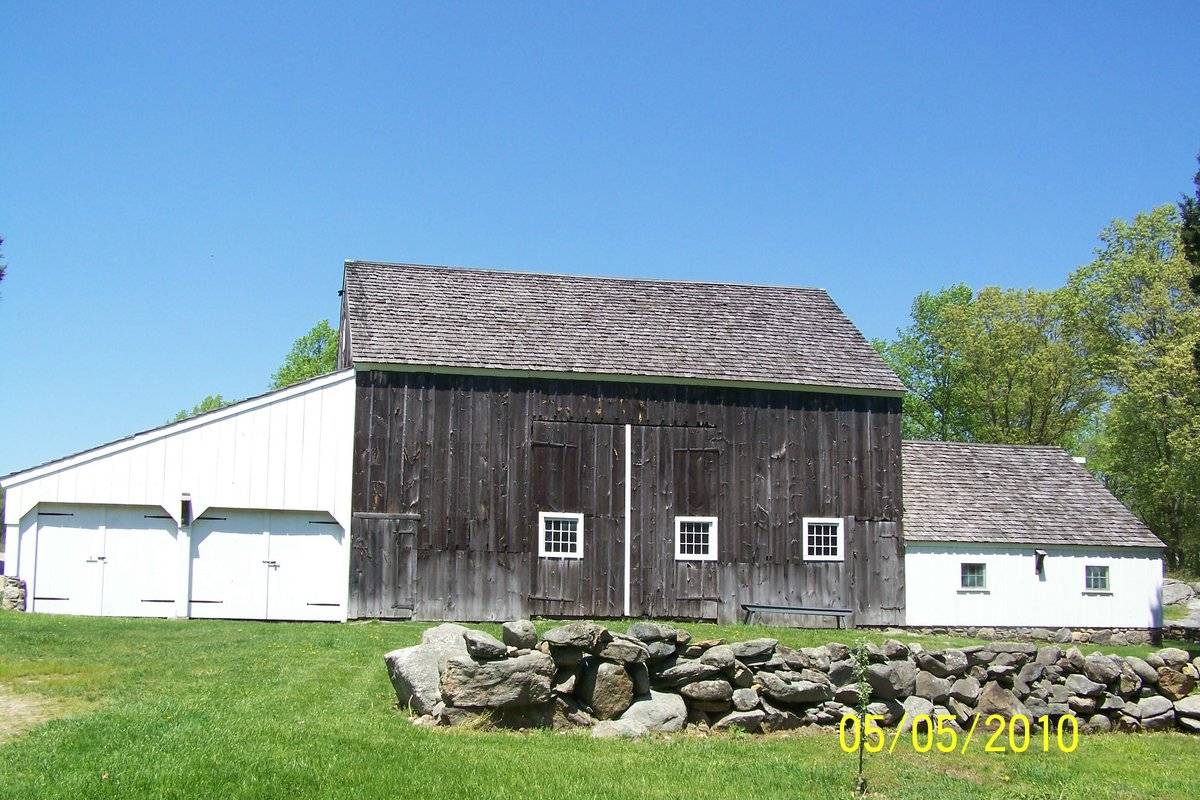 The property was the home and farm of Nehemiah Bushnell & Sarah Ingham Bushnell in the early 1700's. When Nehemiah died, his son, David Bushnell, sold his inheritance to pursue his education, going on to invent the first submarine. It is believed the barn was built in the early 1700s & used for agriculture, including horses & cows. The 2 attachments on either side of the barn were added in recent times; the one on the right used as a carriage house and the one on the left is an active blacksmith shop. The 40' x 28' 2 story English style barn is post & beam construction with vertical siding & wood shingle roof. It currently houses an extensive collection of antique agricultural equipment, including plows, tractors, threshers, horse-drawn equipment & farming implements. The owner, Herb T Clark III, is maintaining the property true to its colonial era, with the historic house, barn & many outbuildings, stone walls, & gateways, a historic treasure in Old Saybrook.