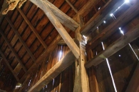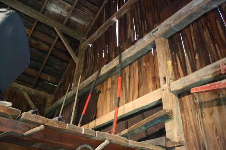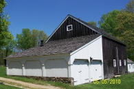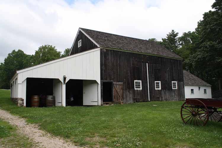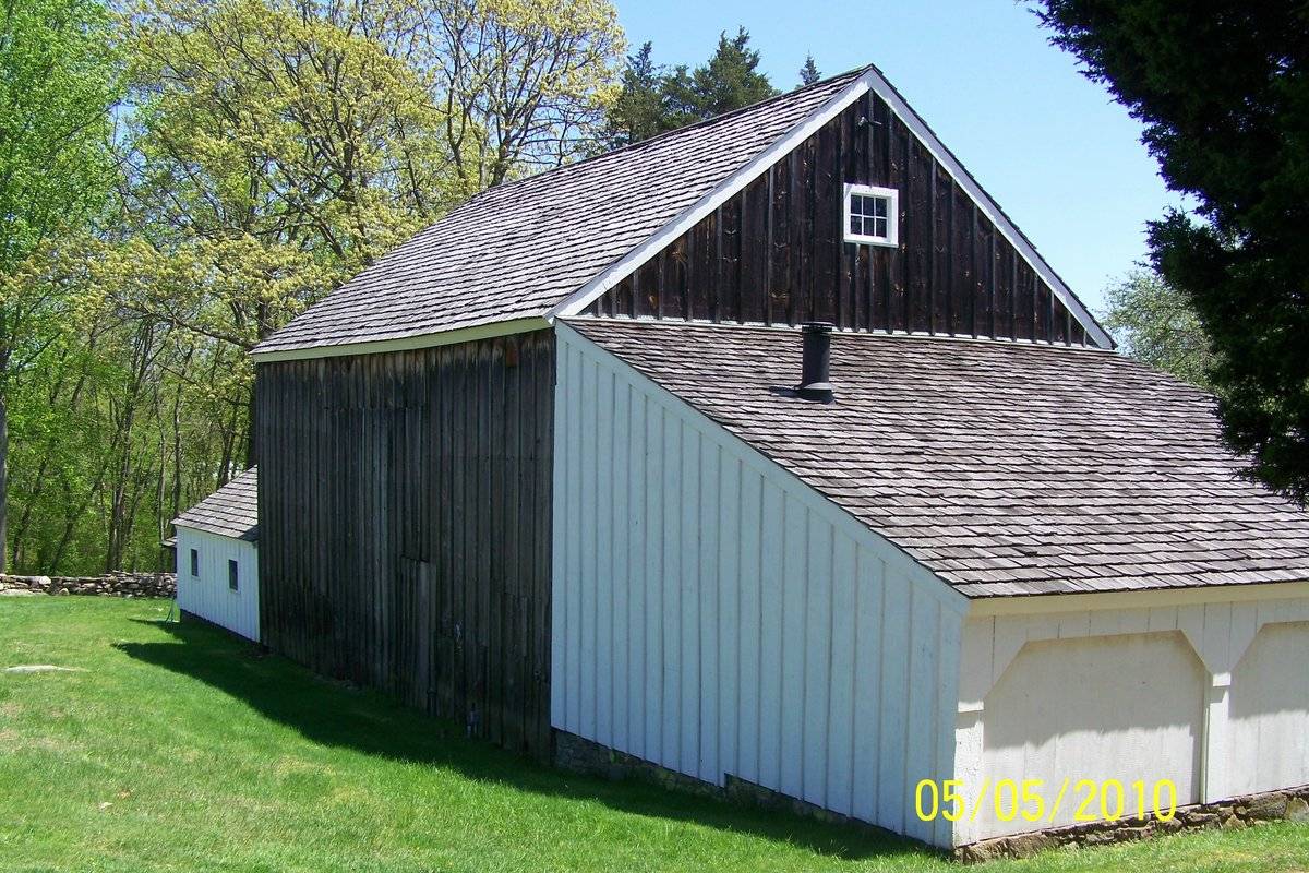 The oldest barns still found in the state are called the “English Barn,” “side-entry barn,” “eave entry,” or a 30 x 40. They are simple buildings with rectangular plan, pitched gable roof, and a door or doors located on one or both of the eave sides of the building based on the grain warehouses of the English colonists’ homeland. The name “30 by 40” originates from its size (in feet), which was large enough for 1 family and could service about 100 acres. The multi-purpose use of the English barn is reflected by the building’s construction in three distinct bays - one for each use. The middle bay was used for threshing, which is separating the seed from the stalk in wheat and oat by beating the stalks with a flail. The flanking bays would be for animals and hay storage.