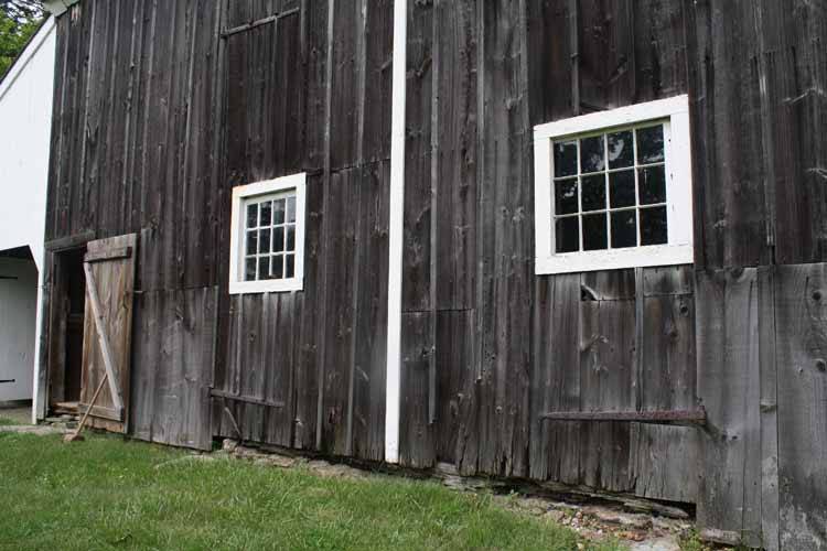 Board-and-batten siding became a popular alternative to wooden shingles on barns during the mid-nineteenth century, especially after the development of the circular saw made the production of long wooden battens easier. Typically measuring about one-and-a-half to two-and-a-half inches wide and about one-and-a-quarter inches think, these battens were nailed over the gaps between the sheathing boards.