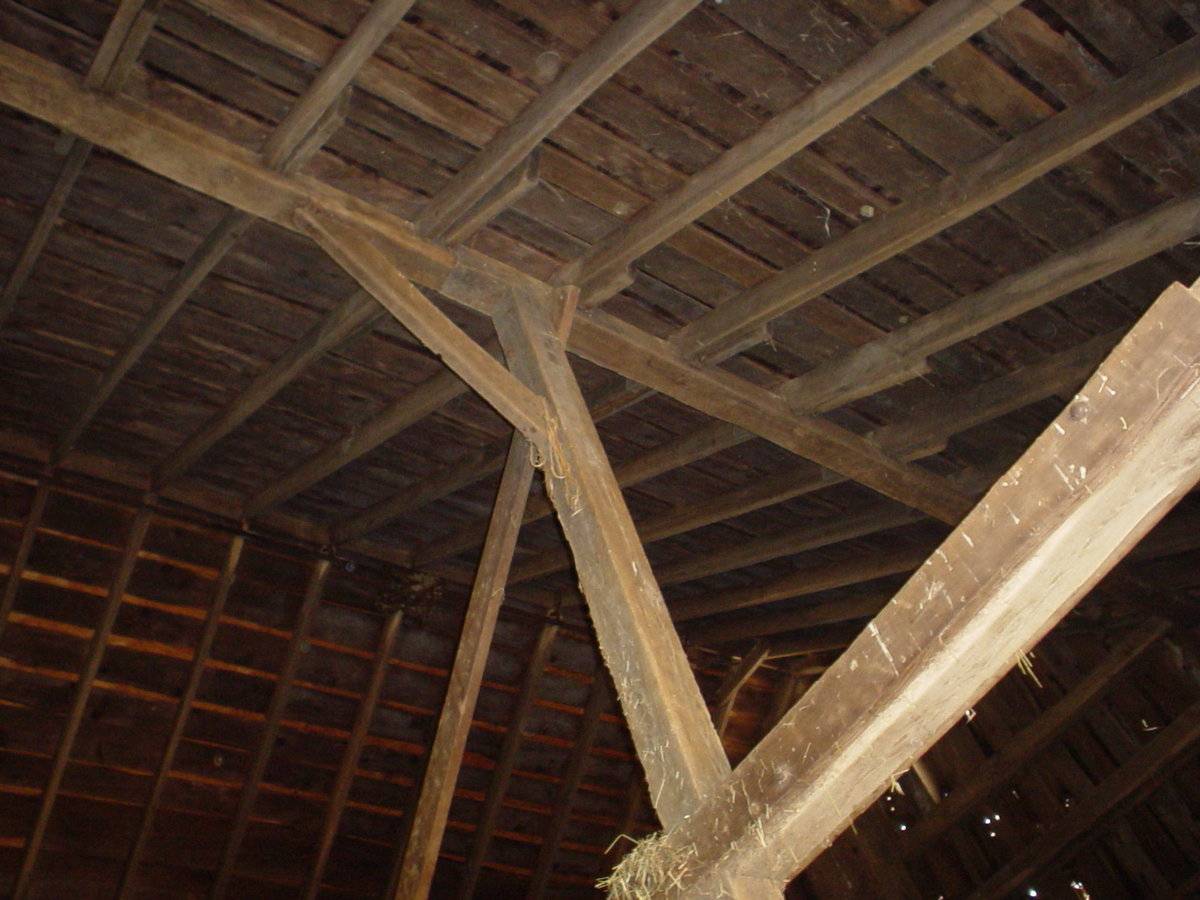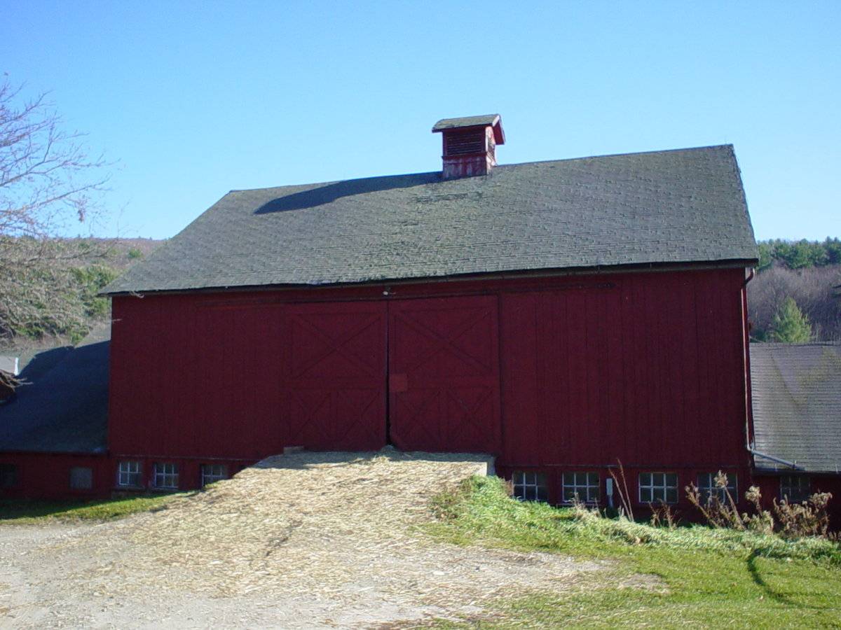 The oldest barns still found in the state are called the “English Barn,” “side-entry barn,” “eave entry,” or a 30 x 40. They are simple buildings with rectangular plan, pitched gable roof, and a door or doors located on one or both of the eave sides of the building based on the grain warehouses of the English colonists’ homeland. The name “30 by 40” originates from its size (in feet), which was large enough for 1 family and could service about 100 acres. The multi-purpose use of the English barn is reflected by the building’s construction in three distinct bays - one for each use. The middle bay was used for threshing, which is separating the seed from the stalk in wheat and oat by beating the stalks with a flail. The flanking bays would be for animals and hay storage.