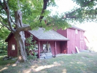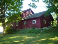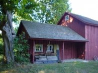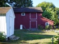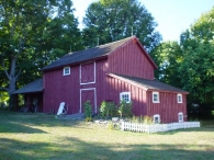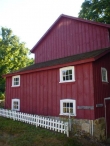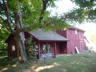Wilson Barn: This is a 1 1/2-story 24’ x 30’ eave-entry two-bay English bank barn with its ridge-line oriented east-west. The barn has a shed-roofed addition across the east end and a gable-roofed addition attached at the west end. The exterior is vertical board-and-batten wood siding with fieldstone foundation walls.
