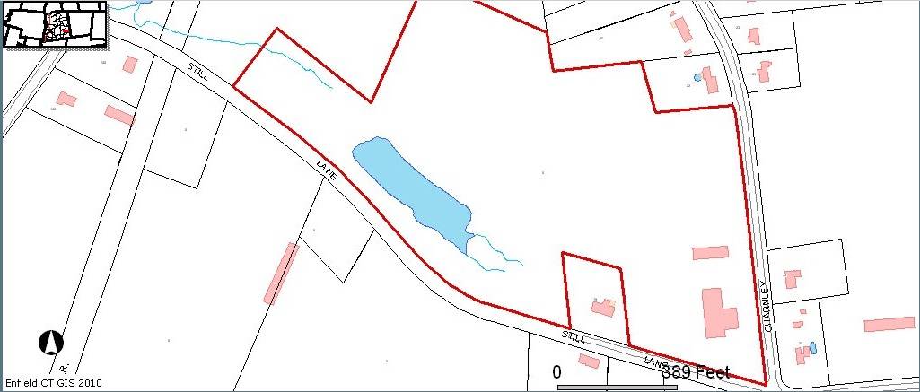 The 20.76 acres property, Map 108-0004, is a corner plot towards the north of Still Lane and the west of Charnley Road in Hazardville Fire District. It is situated in a pre-dominantly residential area with other residential plots towards the north and the east across Charnley Road. Parcels of farm land and tobacco sheds can be seen towards the west, south and east of the property.