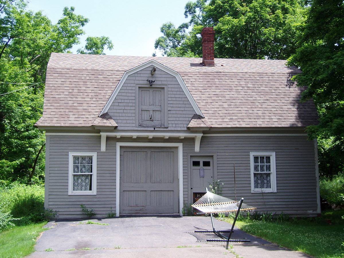 Listed on the State Register of Historic Places 2/06/2013 Historic Resource Inventory by N. Nietering & T. Levine 04/10/2011 Architectural description: This is a 1 ½-story eave-entry carriage barn with a gambrel roof. The primary façade is the west eave-side, which faces Lovely Street. Lovely Street passes this property at a nearly north to south angle. The primary façade of this barn is the west eave-side. Two doors are present on this façade. Off-center slightly to the south is a wooden panel pass-through door. The two top panels have been replaced with rectangular panes of glass. Immediately beside this pass-through door to the north is an over-width sliding door of wooden construction. Farther north from this over-width door is a double-hung six-over-one window. Another six-over-one window is present to the south of the pass-through door. Centered over the large sliding door on the façade is a gambrel wall dormer, projecting slightly. This dormer contains a centered panel access door, topped by a modern security lamp. The projecting dormer is supported by brackets at the eave line. The south gable-end has three rectangular four-over-one double-hung windows evenly spaced on the first story. Within the second story, the gable end contains two symmetrical six-over-one double-hung windows. The east eave-side appears to have three window openings on the first story. The north gable-end has two evenly-spaced six-over-one double-hung windows on the first story, and two addition six-over-one double-hung windows on the second story. A small rectangular window opening is centered just below the roof ridgeline on this gable end. The exterior walls of this barn are clad with horizontal wooden clapboard siding on the first story. The second-story gable-ends, and the façade dormer, are clad with wooden shingles. All exterior walls are painted battleship gray. Some trim is white. The roof is covered with light brown asphalt shingles. Shingled cornice returns are present on both gable ends. A brick chimney is present projecting from the west face of the roof, above the purlin. Historical significance: Until the 1830s, the horses used for riding and driving carriages were often kept in the main barn along with the other farm animals. By the 1850s, some New England farmers built separate horse stables and carriage houses. Early carriage houses were built just to shelter a carriage and perhaps a sleigh, but no horses. The pre-cursor to the twentieth-century garage, these outbuildings are distinguished by their large hinged doors, few windows, and proximity to the dooryard. The combined horse stable and carriage house continued to be a common farm building through the second half of the nineteenth century and the first decade of the twentieth century, until automobiles became common. Elaborate carriage houses were also associated with gentlemen farms and country estates of the late 19th and early 20th centuries. The gambrel roof enclosed a much greater volume than a gable roof did, and its shape could be formed with trusses that did not require cross beams, which would interfere with the movement and storage of hay. Also known as the curb roof, the double slopes of the gambrel offer more volume in the hayloft without increasing the height of the side walls. Detached 2-story Dutch Colonial style, gambrel-roofed carriage & horse barn. House dates to 1893. Brick foundation and chimney. Wood clapboard siding. We didn't get into the interior. According to a previous owner the interior had horse stalls and a groom's living quarters. Surrounding environment is residential.