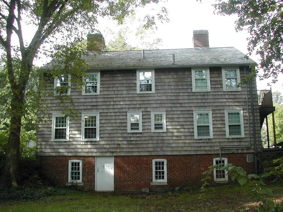 This converted barn now takes the form of a five-bay, 2 ½-story Georgian Colonial house. The main facade faces southwest and the ridge-line runs northwest-southeast. The main entrance is a pass-through door with a simple door-case with a six-light transom centered on the southeast eave-side. Above the door on the second story is an eight-over-twelve double-hung window. The flanking bays each have an eight-over-twelve double-hung window on both the first and second stories. The northwest gable-end has an eight-over-twelve double hung window on the south half of the first story. Just north of the window are wooden stairs that lead up to the second story to a pass-through door that is located on the north half. South of the pass-through door is an eight-over-twelve double-hung window. An eight-over-twelve double-hung window is located in the gable attic. The northeast eave-side has an exposed brick basement level, as the grade is lower on that side of the building. A pass-through door is located on the south half of the basement level. South of the entrance is a six-over-six double-hung window, and north of the door are two six-over-six double-hung windows. All three of these windows have brick lintels with a very slight arch. Centered on the first story are two small six-over-six double-hung windows. Pairs of twelve-over-twelve double-hung windows flank the six-over-six double-windows. The second story has five eight-over-twelve double-hung windows. The southeast gable-end has a pass-through door with a classical door-case centered on the first story. Twelve-over-twelve double-hung windows flank the door. An eight-over-twelve double-hung window is located on the south half of the second story and a small four-pane window on the north half. A six-over-nine double-hung window is located in the gable attic. The building is covered with wood shingles. The roof has a very slight projecting overhang on the eave-sides and is covered with wood shingles. Two interior brick chimneys are located equally spaced in from the gable-ends. The foundation is brick.