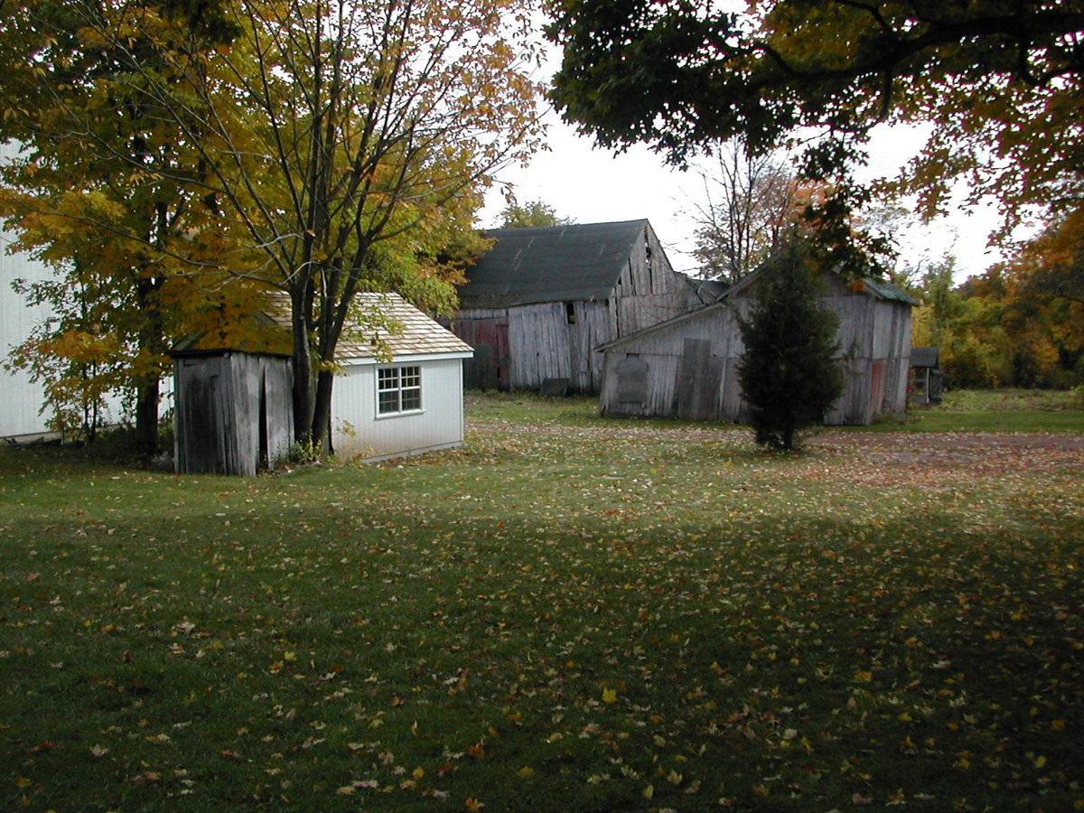 The 1763 main residence, which is a contributing building to the National Register, is situated towards the south-west corner of the property, abutting to Newgate Road. Barn-I is attached to the east eave-side of the main residence, with its ridge line running east-west perpendicular to the road. Barn-II is situated towards the further east of the main residence while the ice-house, Barn-III is towards the south-east. The ridge line of Barn-II runs east-west perpendicular to the road while that of Barn-III runs north-south parallel to the road. The property includes two other small gable-roof sheds: one towards the west of Barn-II and the other towards the north of Barn-III. Dense woodland can be seen towards the east of Barn-III. A tobacco shed, Barn-IV, is situated towards the north of the main residence with its west gable-side abutting to Newgate Road. Parcels of farm land can be seen towards the east and north-east of the tobacco shed.