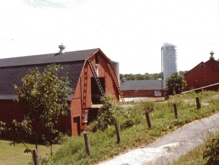 This has been Tulmeadow Farm since 1768. There are barns on both sides of the street and the barns at No. 250 also belong to this farm. History: Members of the Tuller family have been farming the land in West Simsbury, Connecticut for over 240 years, since 1768. While Tulmeadow Farm has always been a diversified family farm, it hasn’t always been named “Tulmeadow”. In earlier days, a farm was simply named after the farmer who was cultivating its land, but in the first half of the 1900’s, Tulmeadow Farm was known as Basswood Farm, named after several large basswood trees that were growing around the houses and barns on the land. O. D. Tuller purchased a number of purebred Holstein Dairy Cattle to raise on the farm in the 1950’s. He wanted to register the calves that were born from these cows with the Holstein Association USA using the farm name as the prefix of the calves registered name. He discovered that “Basswood” was already a prefix of another dairy farms’ animals, hence, a field north of the cow barn known as “Tuller Meadow” became the foundation of the name “Tulmeadow”. Many New England farms were diversified, growing a variety of crops, and producing multiple farm products. Our farm was, and is no exception. Broad leaf tobacco, capons, cider-brandy, butter, eggs, apples, Christmas trees and firewood are some of products that have been grown and harvested over the years. In the 1960’s and 1970’s, the farm raised 2400 chickens for the eggs that they produced and milked 70-75 dairy cows. We raised forage crops to feed them and managed approximately 6 acres of apple trees. By the early 1980’s, egg production was phased out. In 1983 the we felt that we were at a crossroads and either had to expand the dairy, or move the farm in a new direction. We decided not to expand the dairy, but while continuing to milk the cows, we would develop a direct marketing enterprise. We planted a large vegetable garden, and started selling vegetables from a road-side table located near the front of the current farm store. The make-shift stand was self-service, using a cigar box for customers to leave payment. As the farm stand grew and evolved, we bought a used 20×96 foot greenhouse and erected it on the site that a large chicken house had occupied. http://www.tulmeadowfarmstore.com/history/
