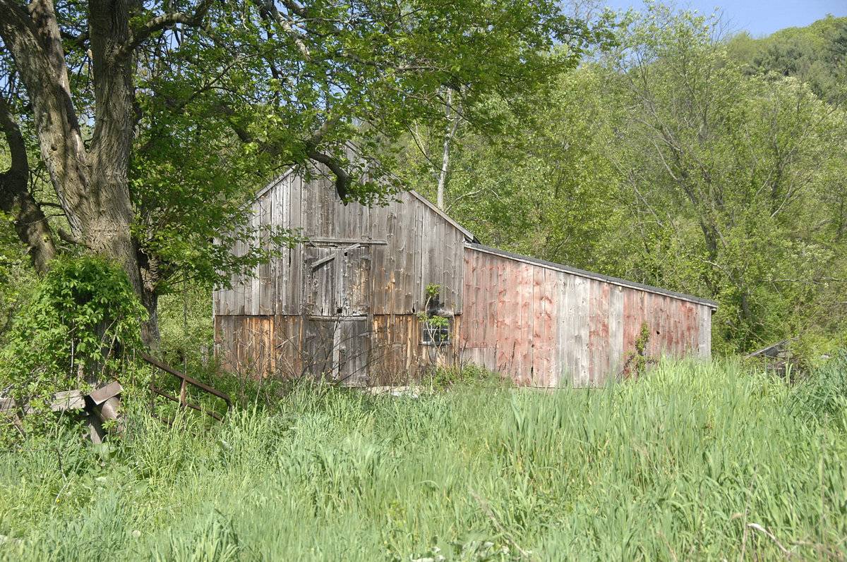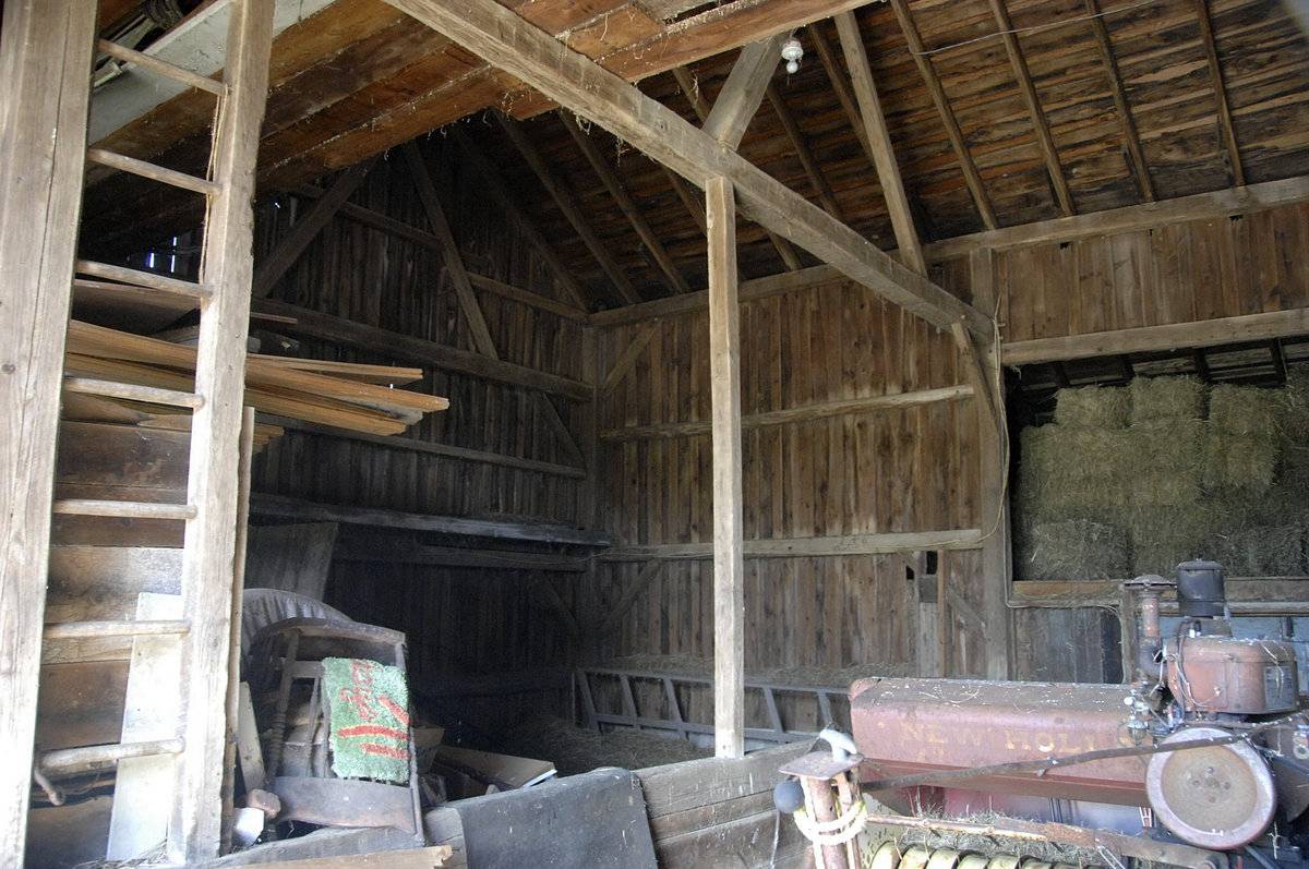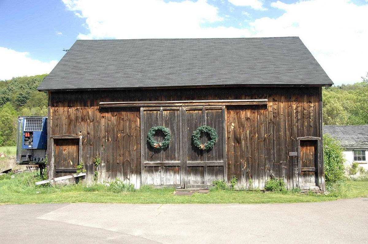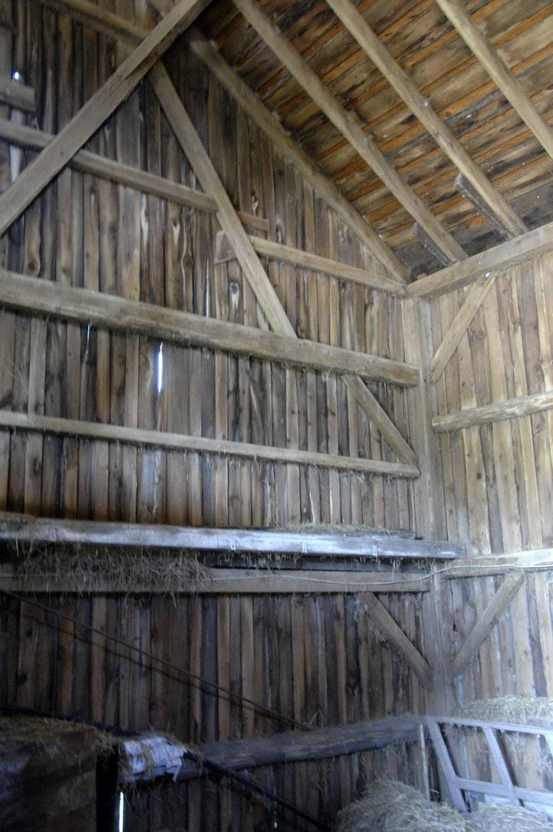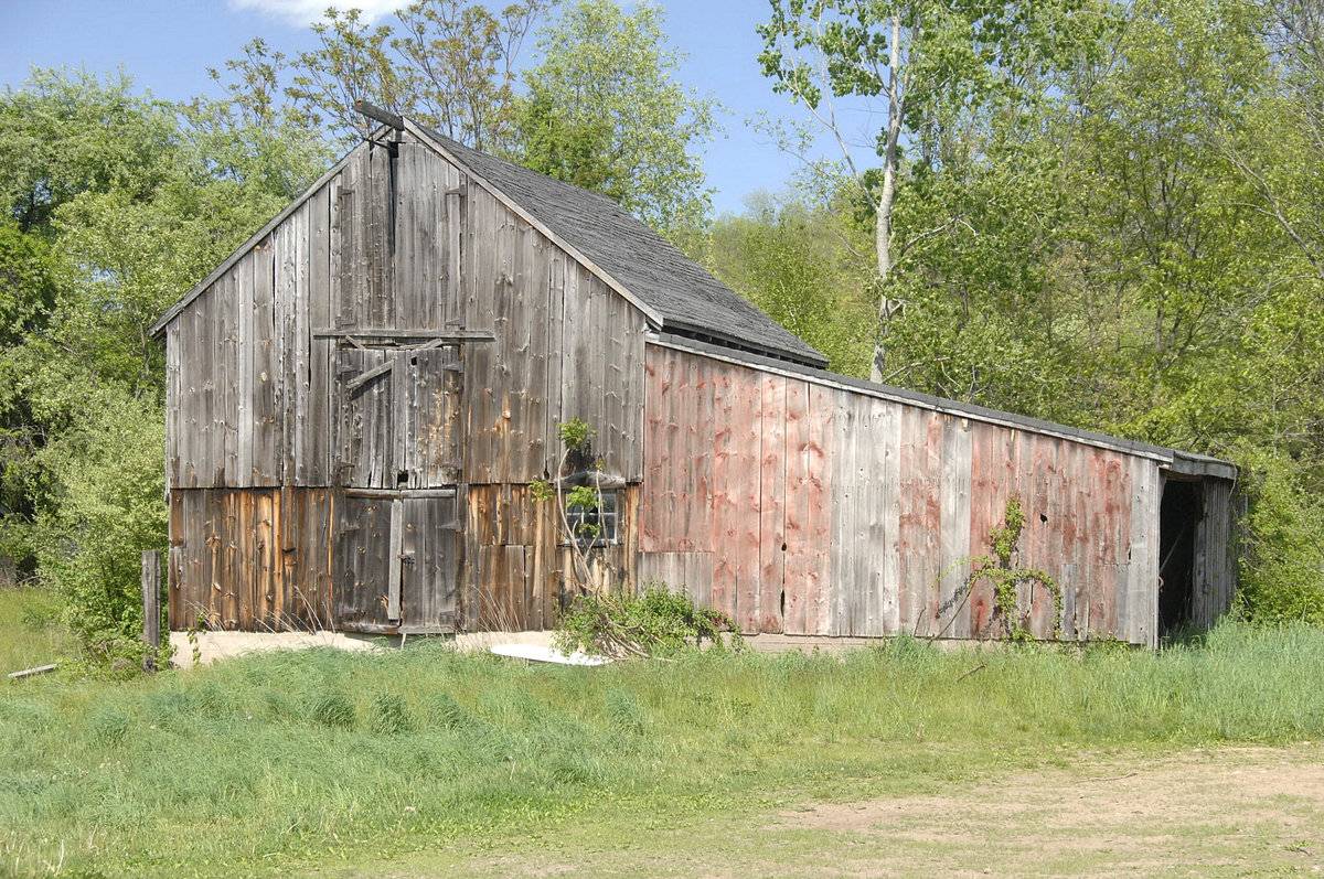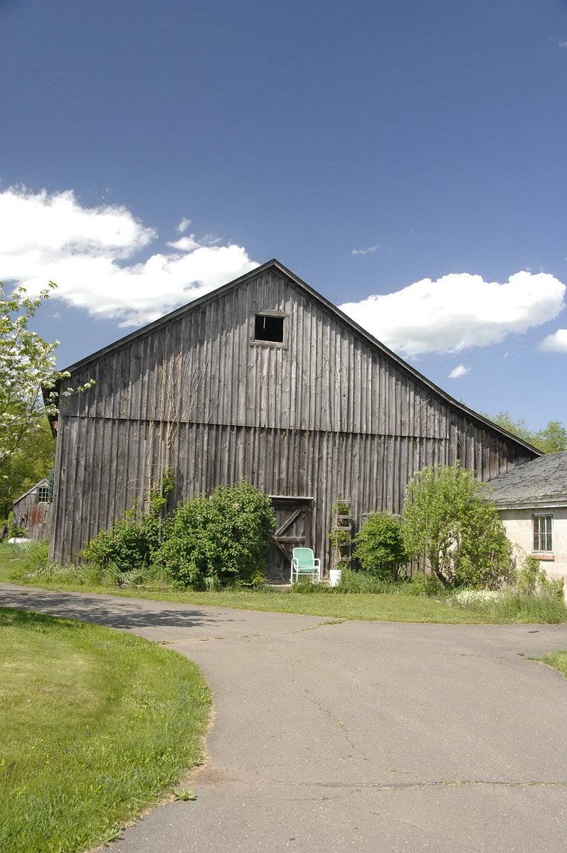 The oldest barns still found in the state are called the “English Barn,” “side-entry barn,” “eave entry,” or a 30 x 40. They are simple buildings with rectangular plan, pitched gable roof, and a door or doors located on one or both of the eave sides of the building based on the grain warehouses of the English colonists’ homeland. The name “30 by 40” originates from its size (in feet), which was large enough for 1 family and could service about 100 acres. The multi-purpose use of the English barn is reflected by the building’s construction in three distinct bays - one for each use. The middle bay was used for threshing, which is separating the seed from the stalk in wheat and oat by beating the stalks with a flail. The flanking bays would be for animals and hay storage.