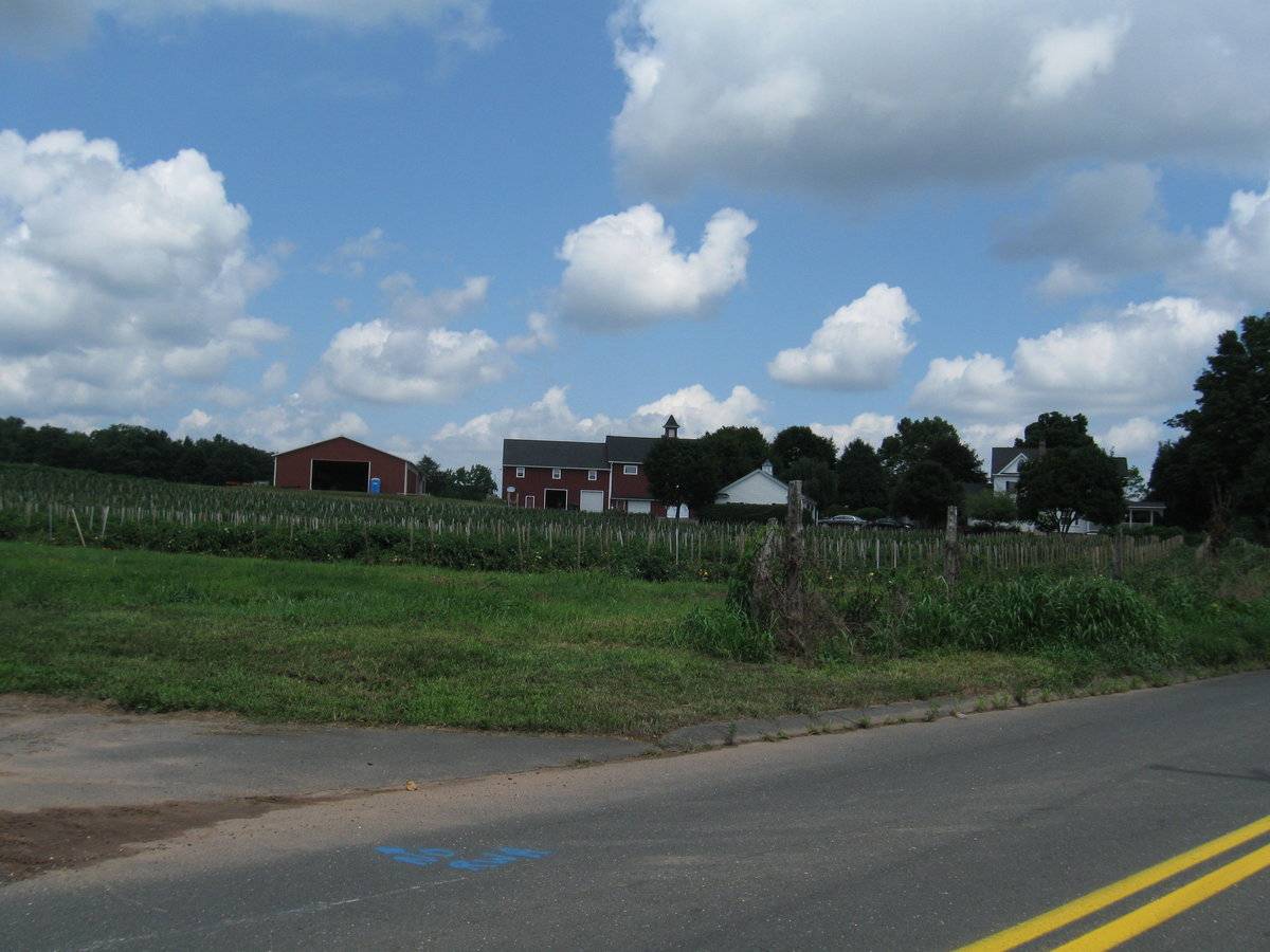 The barn is behind and to the northwest of the c. 1823 vernacular Greek Revival-style house it is associated with. The ridge-line of the house and barn are oriented east-west, perpendicular to the road. A gable-roofed three bay garage is located to the south of the barn and west of the house. A large gable-roofed garage is located to the west of the barn. Located to the north of the barn is a large complex of greenhouses. Located to the south and west of the barn and associated buildings are open fields. Further to the west of the property is woodland and Highway I-84, which runs generally east-west across the state. Located further to the east, across Marion Road, are several industrial complexes in the Cheshire Industrial Park. The total size of the site is 69.31 acres. The area surrounding the site is active agriculture, industrial, residential and woodland. The site is near the northern border of Cheshire where it abuts Southington.