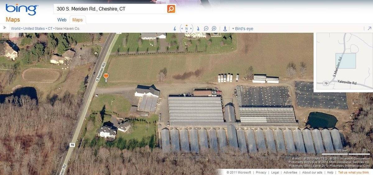 The barn is to the east of South Meriden Road, which runs approximately north-south. Located to the east and south of the barn is a large complex of various modern hoop-style greenhouses. To the north of the barn and extending to the east and north is a large open field. The total size of the site is 37.05 acres. The area surrounding the site is residential, agricultural, and woodland. It is located in the eastern part of Cheshire, east of Route 10, north of Route 70, major through roads, and west of Broad Brook Reservoir.