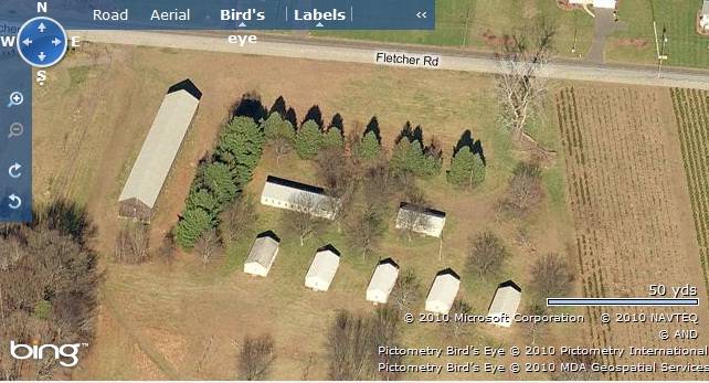 This is a barn complex towards the south of Fletcher Road with fourteen gable-entry tobacco sheds and other outbuildings scattered in the 144.8 acres plot.