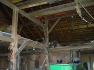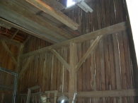 The oldest barns still found in the state are called the “English Barn,” “side-entry barn,” “eave entry,” or a 30 x 40. They are simple buildings with rectangular plan, pitched gable roof, and a door or doors located on one or both of the eave sides of the building based on the grain warehouses of the English colonists’ homeland. The name “30 by 40” originates from its size (in feet), which was large enough for 1 family and could service about 100 acres. The multi-purpose use of the English barn is reflected by the building’s construction in three distinct bays - one for each use. The middle bay was used for threshing, which is separating the seed from the stalk in wheat and oat by beating the stalks with a flail. The flanking bays would be for animals and hay storage.