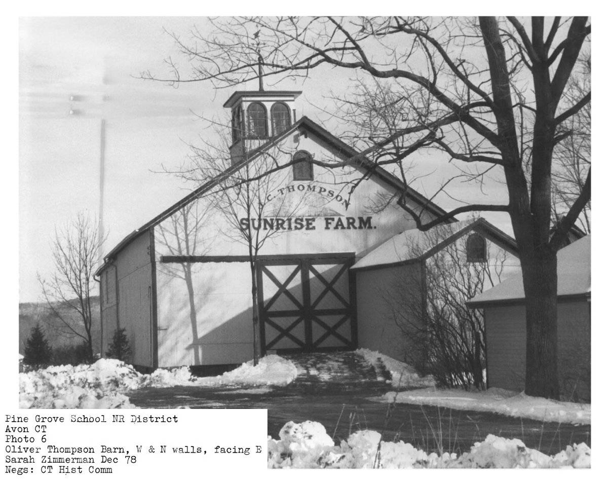 The Sunrise Farm is listed as a contributing resource in the Pine Grove Historic District, listed on the National Register of Historic Places in 1980. See Sources for a link to the official National Register nomination.