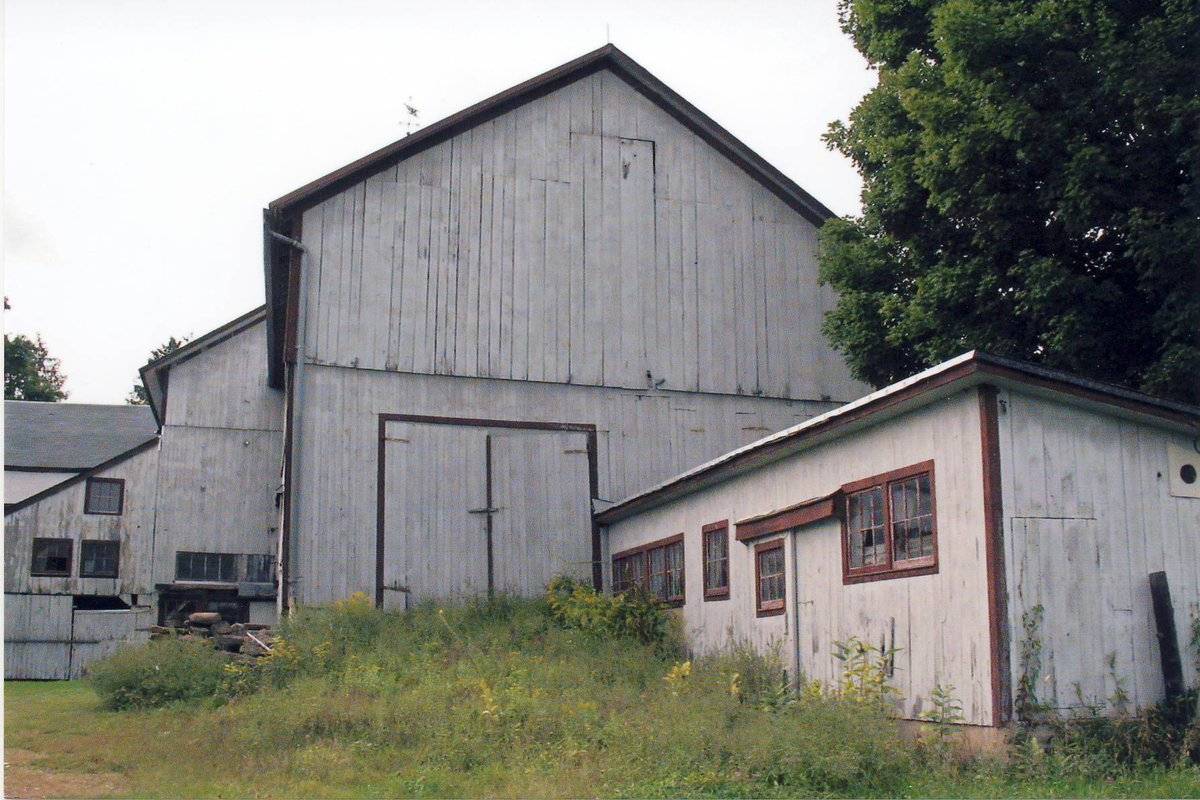 A second complex of barns is located to the immediate southeast of those previously described. This complex includes Barn II, a gable-roof bank barn parallel to West Avon Road, and Barn III with Addition, a gable-end to gable-end joined pair of structures oriented perpendicular.