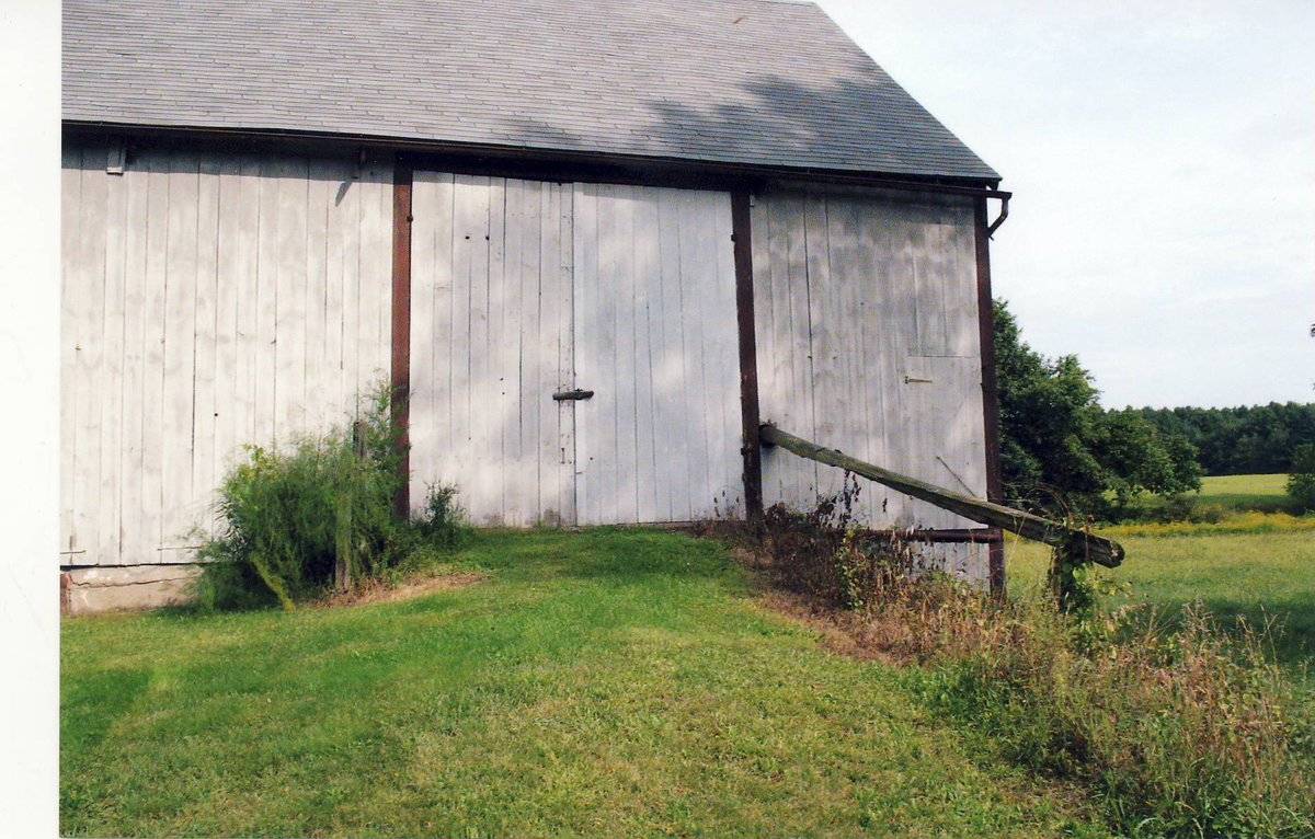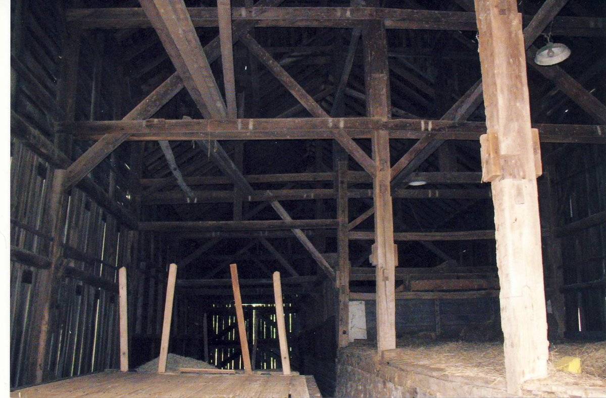 The oldest barns still found in the state are called the “English Barn,” side-entry barn,” “eave entry,” or a 30 x 40. They are simple buildings with rectangular plan, pitched gable roof, and a door or doors located on one or both of the eave sides of the building based on the grain warehouses of the English colonists’ homeland. The name “30 by 40” originates from its size (in feet), which was large enough for 1 family and could service about 100 acres. The multi-purpose use of the English barn is reflected by the building’s construction in three distinct bays - one for each use. The middle bay was used for threshing, which is separating the seed from the stalk in wheat and oat by beating the stalks with a flail. The flanking bays would be for animals and hay storage.