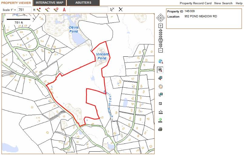 The 53.8 acres parcel, Property ID: 146/009 and Account number – M0218200_1, is located towards the east of Pond Meadow Road. The property is situated in a sparsely populated residential area of rural character with individual plots separated by dense woodland. Residential plots can be seen towards the north and the west of the property across the road while dense woodland covers the area towards south. Otrins Pond is located towards the northeast of the property while farm land surrounded by dense woodland can be seen towards the east.