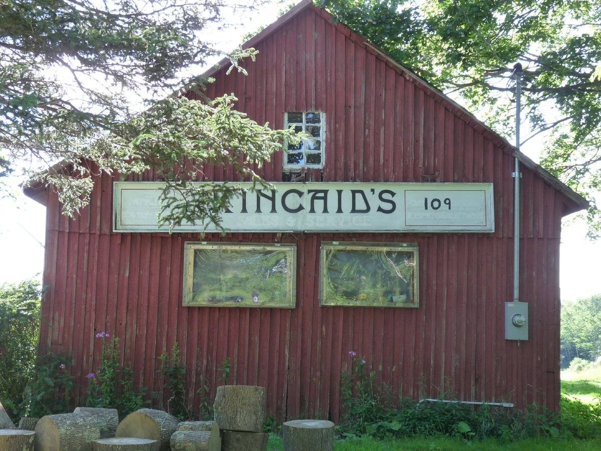 This is a 1 ½ - story three-bay eave-entry barn with a gable-roof addition on its east gable-end. The ridge lines of both the main barn and the gable-roof addition run east-west perpendicular to East Street North. The east gable-end of the gable-roof addition faces the road while the three-bay south eave-side of the main barn flush with the south eave-side of the gable-roof addition is the main façade. The main entrance to the barn is on the south eave-side of the gable-roof addition towards the east through a pair of hinged wagon doors with vertical boards. A single-pane square window insert can be seen towards the east of the main entrance. The façade has a second entrance towards the western edge of the three-bay south eave-side of the main barn through a pair of hinged wagon doors which appears to be separated from the main entrance by three single-pane windows. The west gable-end of the gable-roof addition has two closely spaced windows at the center with the gable attic separated by a distinct dropped girt siding divide line. The gable attic has a vertical eight-pane window at the center with a sign board below it displaying the plot number as ‘109’ and the name of the farm as ‘KINCAID’S’. The gable roof of the main barn has a louvered cupola at the center and a metal vent towards the east.
