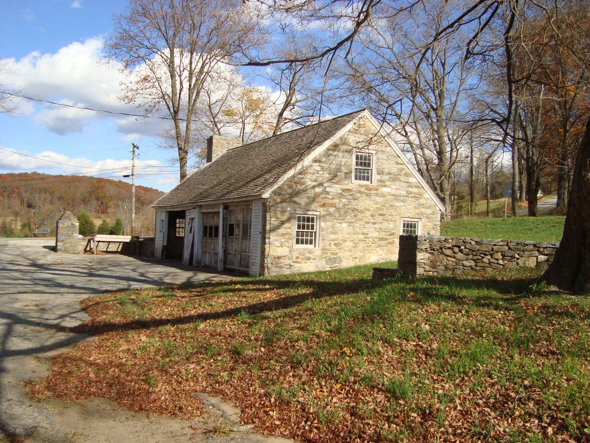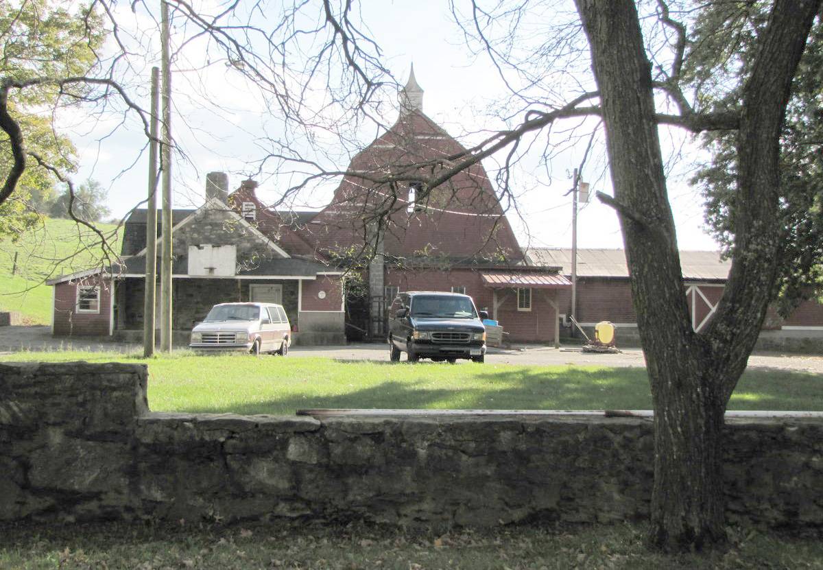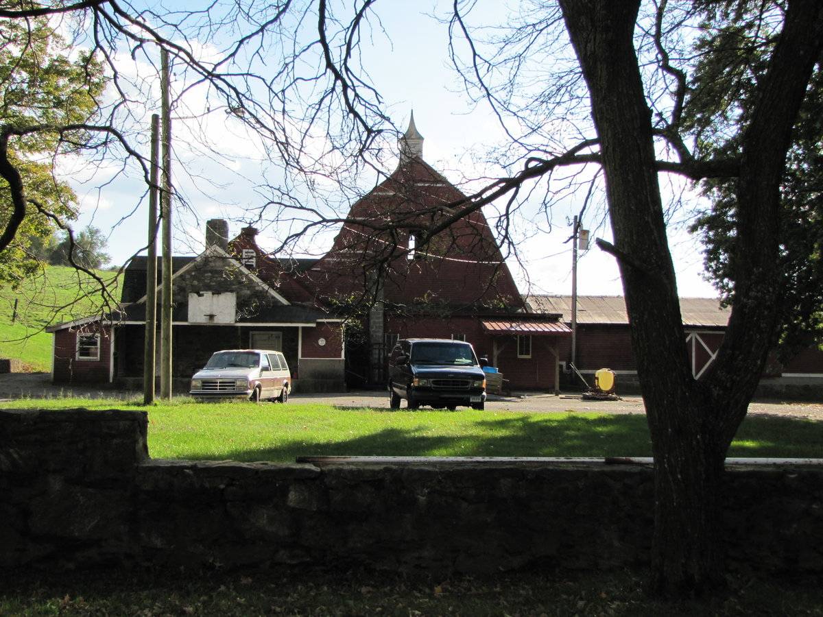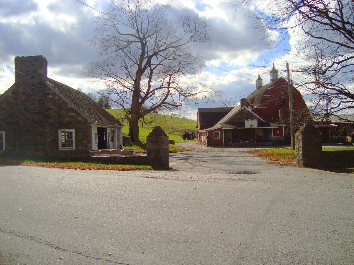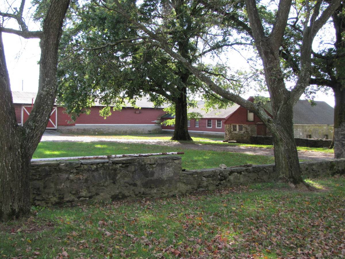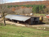 To the north of the barns, the property is bordered by a mortared cut stone wall arranged in irregular coarses. A paved drive that begins on Murphy Hill Road runs west on the north side of the barn complex, before turning south. Beyond the boundaries of the property are large expanses of woodlands interspersed with occasional tracts of farmland.