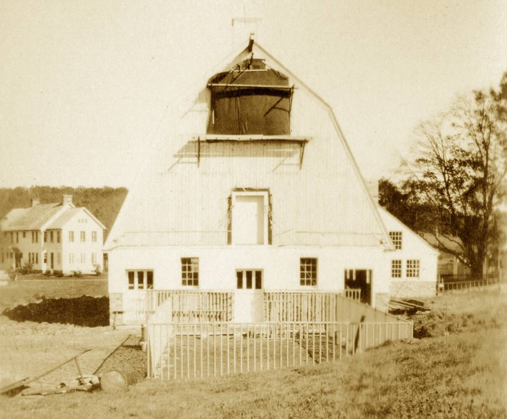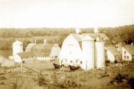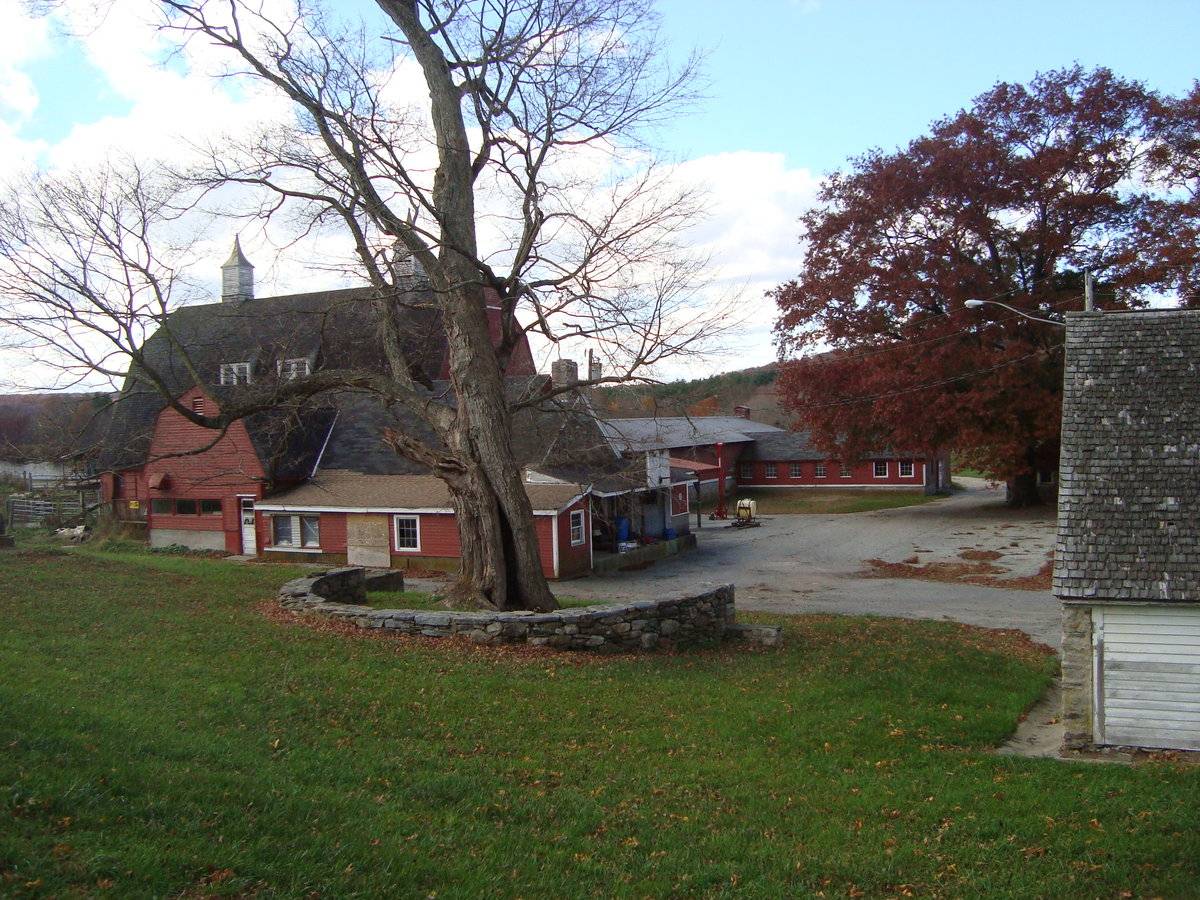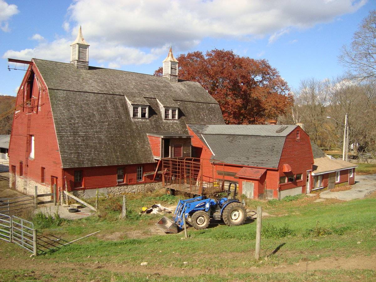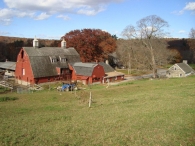 West wide of Murphy Hill Road, at bend of road. There is a major red barn, with an outbuilding to the right, and an apparently much older white outbuilding with stone chimney, to the left of the barn. The whole area seems to be in active use. Address listed as 75 Murphy Hill Road, but Tax Assessor lists it as 51 Murphy Hill Road. Current owner is the son whose father purchased the farm in 1970 and tells of the main barn being built for a New York City jeweler who came out to the farm on weekends. Barn was said to have been built in the early 1920's by the Perry brothers, two Scotland carpenters. The oldest of the black and white photos show the barn nearly finished, with the 2 1/2 story original homestead. The home burned to the ground prior to the late 1930's and was rebuilt in it's current configuration as a 2 1/2 story stone end structure. Carriage house type structure under consideration to be renovated into wine tasting facility for a winery operation started in 2009.