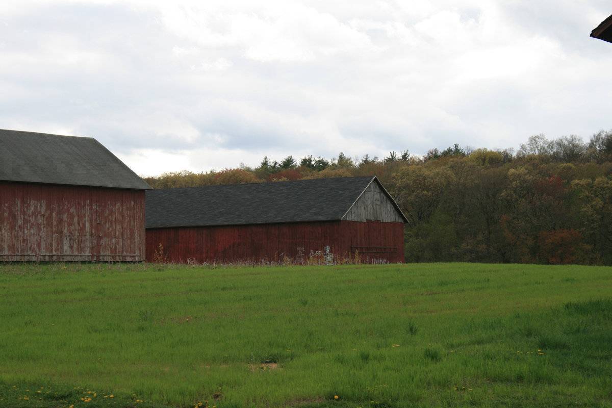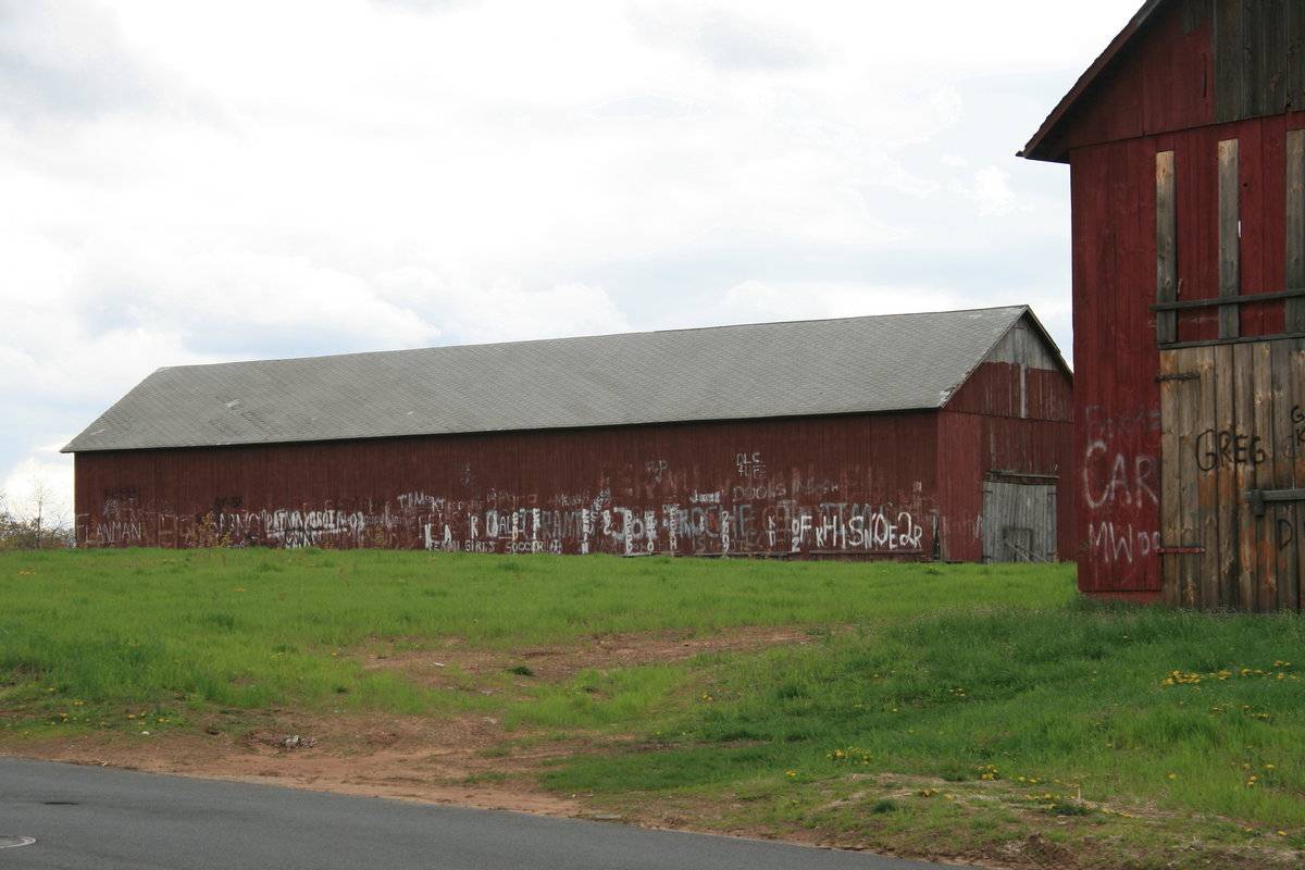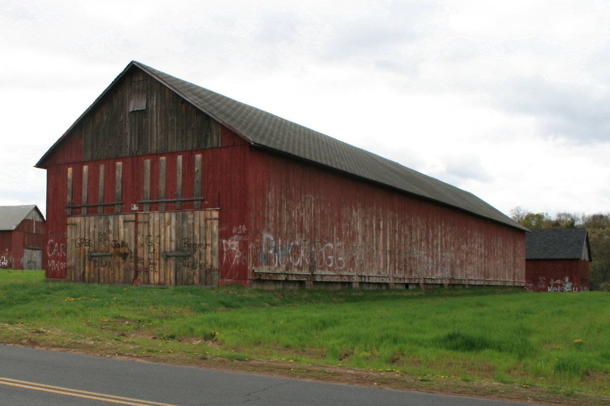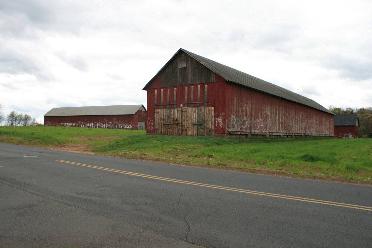 Four tobacco sheds - two perpendicular to Abbe Rd., two parallel further to the west.