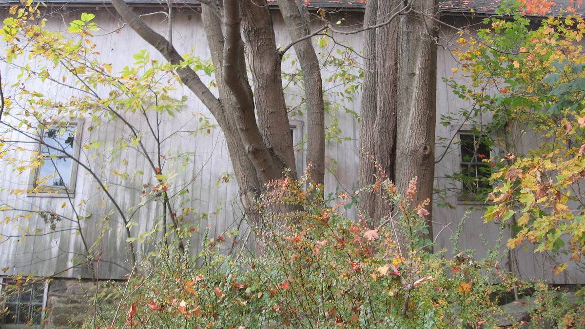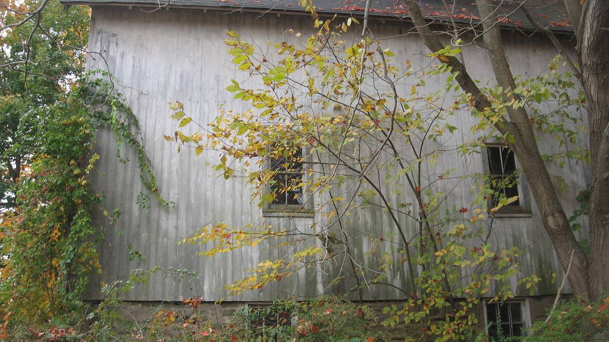 There are five outbuildings (plus the house) on this site; the summer kitchen, a small English bank barn, a small chicken coop, the L-shaped wagon barn and the main English bank barn. 2011 Barns grant pre-applicant.