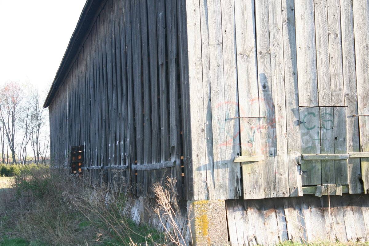 One of a group of five tobacco sheds on the south side of Fletcher Road east of Broad Brook Road.