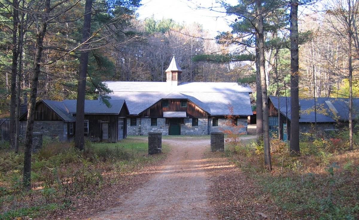 The barn is behind to the north of the c. 1930 Cape Cod-style house it is associated with. Two fieldstone pillars are located in front of the main barn where the main drive becomes circular around the barn. The total size of the site is 1.72 acres. The area surrounding the site is residential and woodland.