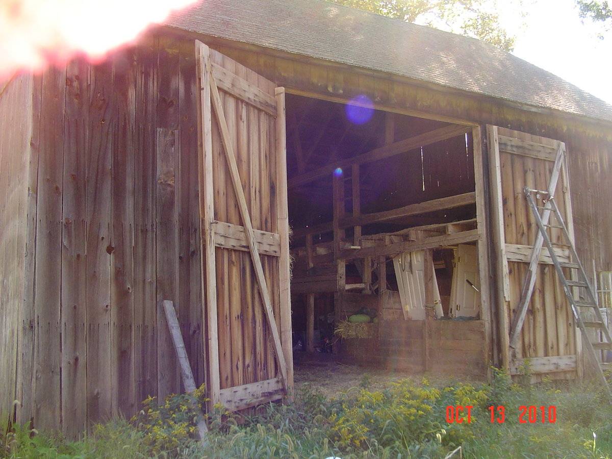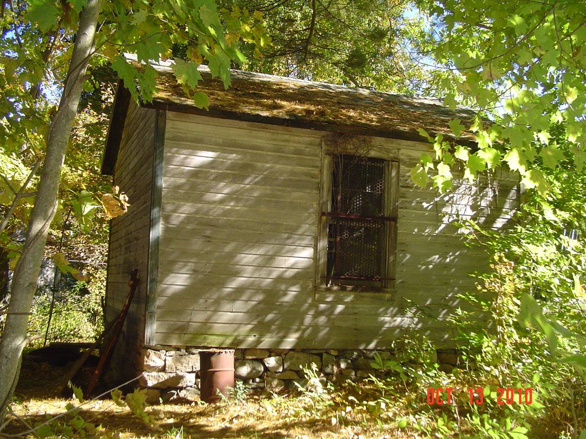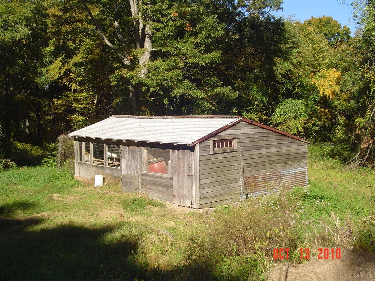 Three buildings 1. Large post and beam barn. 2. Poultry coop, presently housing turkeys. 3. Former general store type building.