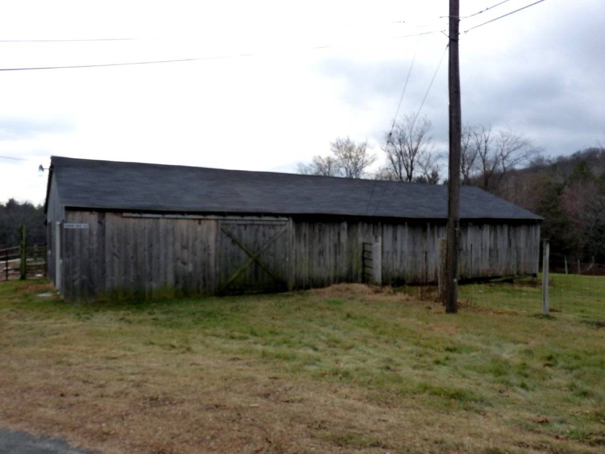 Barn-I: This is a 1 ½ - story eave-entry barn with a salt-box roof addition encompassing the entire length of its south eave-side. The west side wall of the salt-box roof addition flush with the west gable-end of the main barn has an addition with a cross-gable. The north eave-side of the main barn facing Hill House Road is the main façade with the main entrance off-centered towards the east through an exterior-hung hooded sliding wagon door. The west gable-end of the barn has an entrance towards the north through a double X-braced hinged pass-through door and the addition with the cross-gable roof towards the south on the west side-wall of the salt-box roof addition. The undulating grade level along the west gable-end reveals a margin of the cement plastered masonry foundation of the barn. The gable attic appears to originally have a hay door/window just below the apex of the roof which has been sealed by diagonal boards while the rest of the gable-end has vertical siding. The north eave-side of the addition with the cross-gable roof has a margin of exposed concrete block masonry foundation along the grade level while the west gable-end has two entrances towards either sides through two double X-braced hinged pass-through doors. A six-pane stable window can be seen towards the south with a margin of concrete block masonry foundation near the grade level.