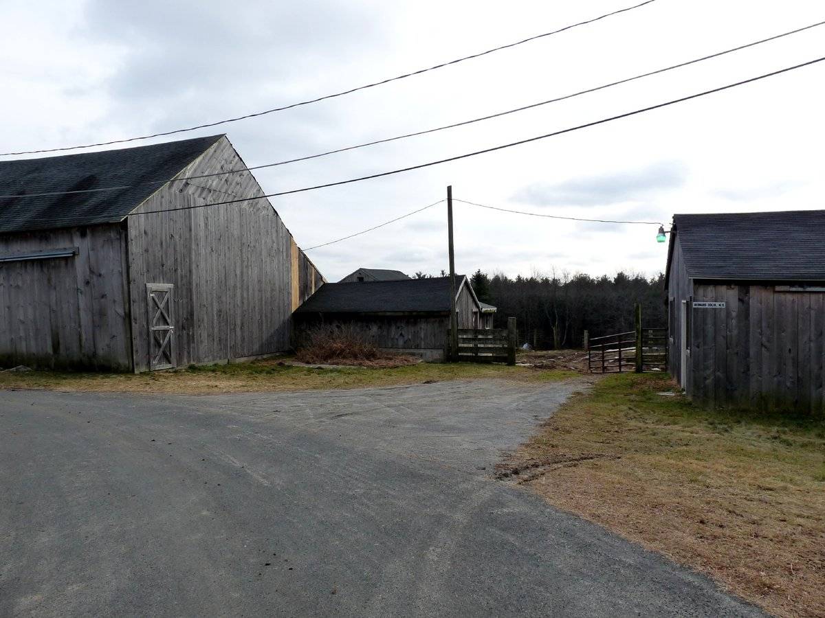 The three barn complex is located offset from Hill House Road and is accessed by Howe Road from the north. Barn-I barn is located towards the east while Barn-II is located towards the west. The circa 1940 colonial style main residence can be seen towards the east of Barn-I with a swimming pool towards its south. The ridge lines of both the barns and the main residence run east-west, parallel to Hill House Road. A third barn, Barn-III can be seen towards the south of Barn-I with its ridge line running north-south. The property has parcels of open land on either side of Howe Road and surrounding the barn complex. Dense woodland covers the area towards the east, south and the west of the property.