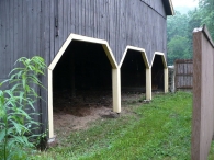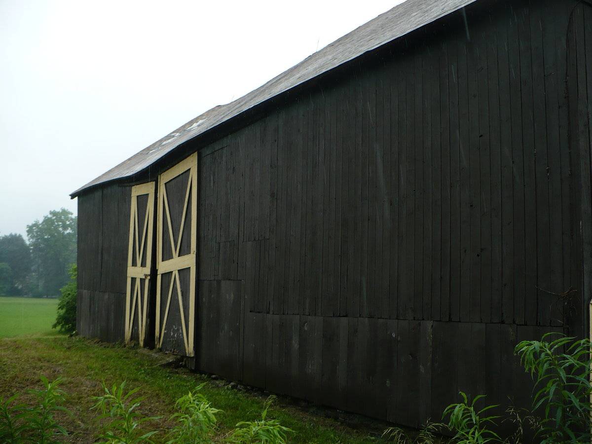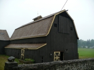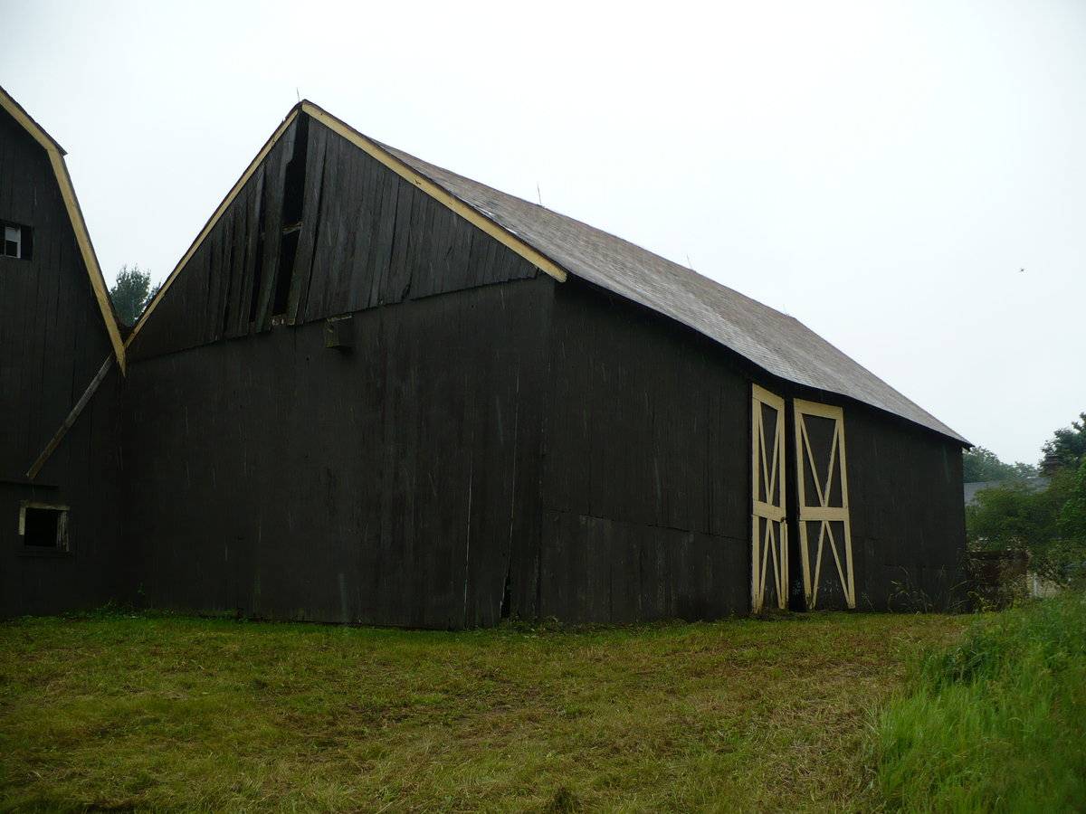 The oldest barns still found in the state are called the “English Barn,” “side-entry barn,” “eave entry,” or a 30 x 40. They are simple buildings with rectangular plan, pitched gable roof, and a door or doors located on one or both of the eave sides of the building based on the grain warehouses of the English colonists’ homeland. The name “30 by 40” originates from its size (in feet), which was large enough for 1 family and could service about 100 acres. The multi-purpose use of the English barn is reflected by the building’s construction in three distinct bays - one for each use. The middle bay was used for threshing, which is separating the seed from the stalk in wheat and oat by beating the stalks with a flail. The flanking bays would be for animals and hay storage.