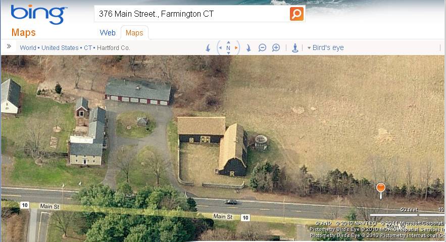 Map of Unionville, CT, retrieved on April 9, 2011 from website www.bing.com.