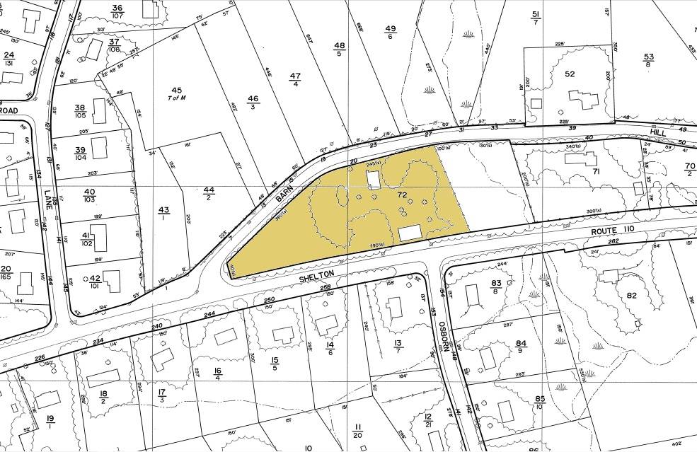 The 3.35-acre property with its c. 1827 house is located on the south side of Barn Hill Road. Barn Hill Road runs generally south from the high point of Barn Hill in the northeast part of Monroe. It bends westward as it passes this property, and then southwest toward the center of Monroe. The present-day Shelton Road (Route 110) is a historically recent construction (1935); in the 19th century Barn Hill Road connected with Old Tannery Road to reach the Green at the center of town. Today the Shelton Road right-of-way runs directly south of the barn, leaving the property as a wedge-shaped site between Shelton and Barn Hill Roads.
