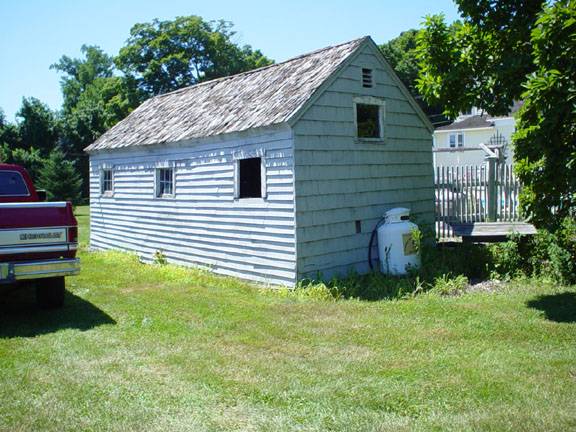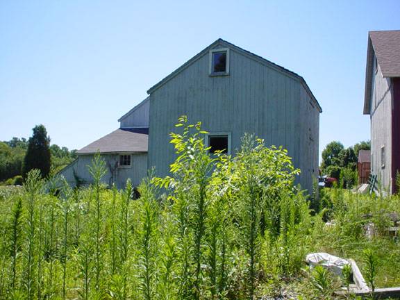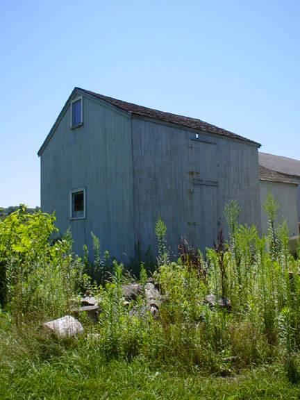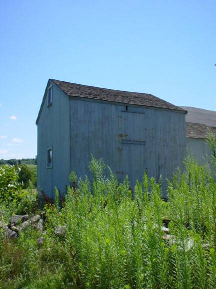Shed-I: This is a 1 ½ - story eave-entry gable-roof shed with a gable-roof addition off-centered towards the south. The ridge lines of both the main shed and the gable-roof addition run east-west almost parallel to this portion of Barn Hill Road. The north eave-side of the Shed-I facing the road is the main façade with the main entrance at the center through a hinged pass-through door with a hinged hay door centered above it. The west gable-end of the shed has the gable-roof addition off-centered towards the south and ha window opening centered in the gable attic. The west gable-end of the gable-roof addition has an entrance at the center through a pass-through door flanked by a square window towards the north. The southwest edge of the gable-roof addition abuts to the northeast edge of Barn-I. The east gable-end of Shed-I has a single-pane square window insert at the first floor level and a similar single-pane window just below the apex of the roof.