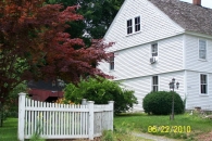 The house was built in 1785. The property is located in a high density residential area.The barn is located behind the house and difficult to see. It appears to be a New England style in poor condition.