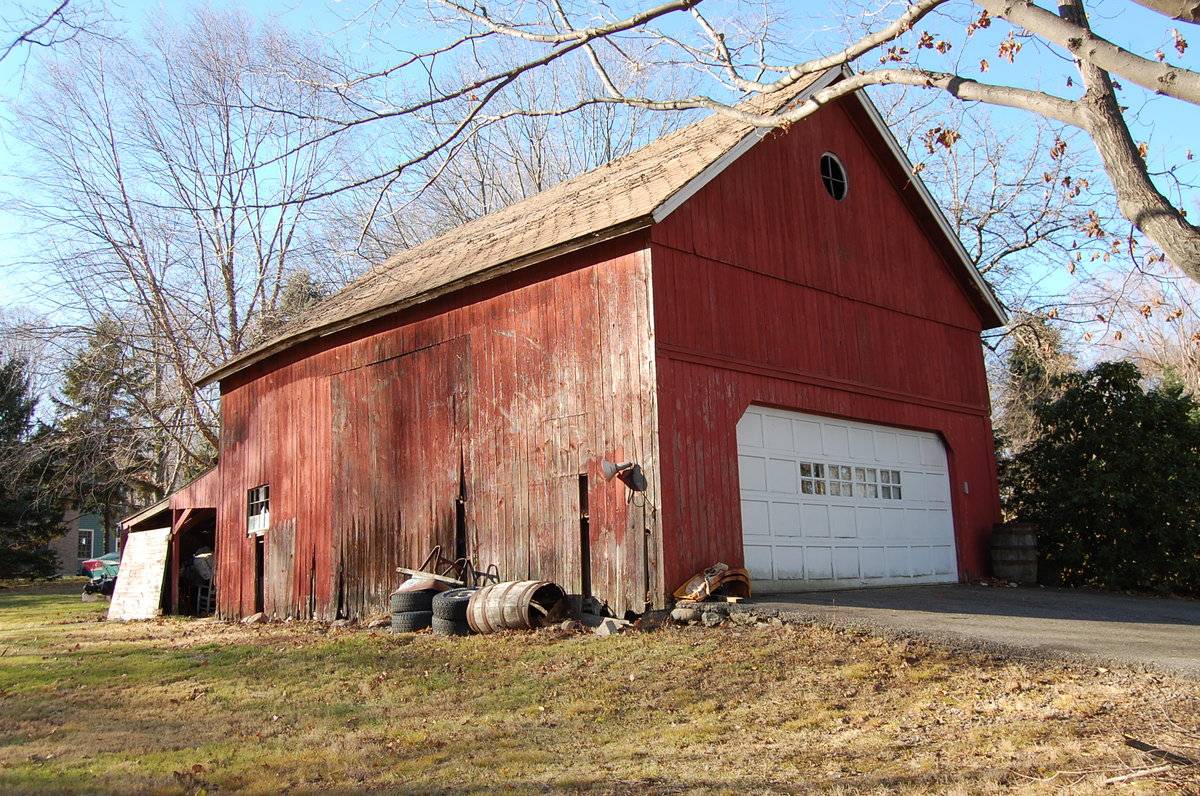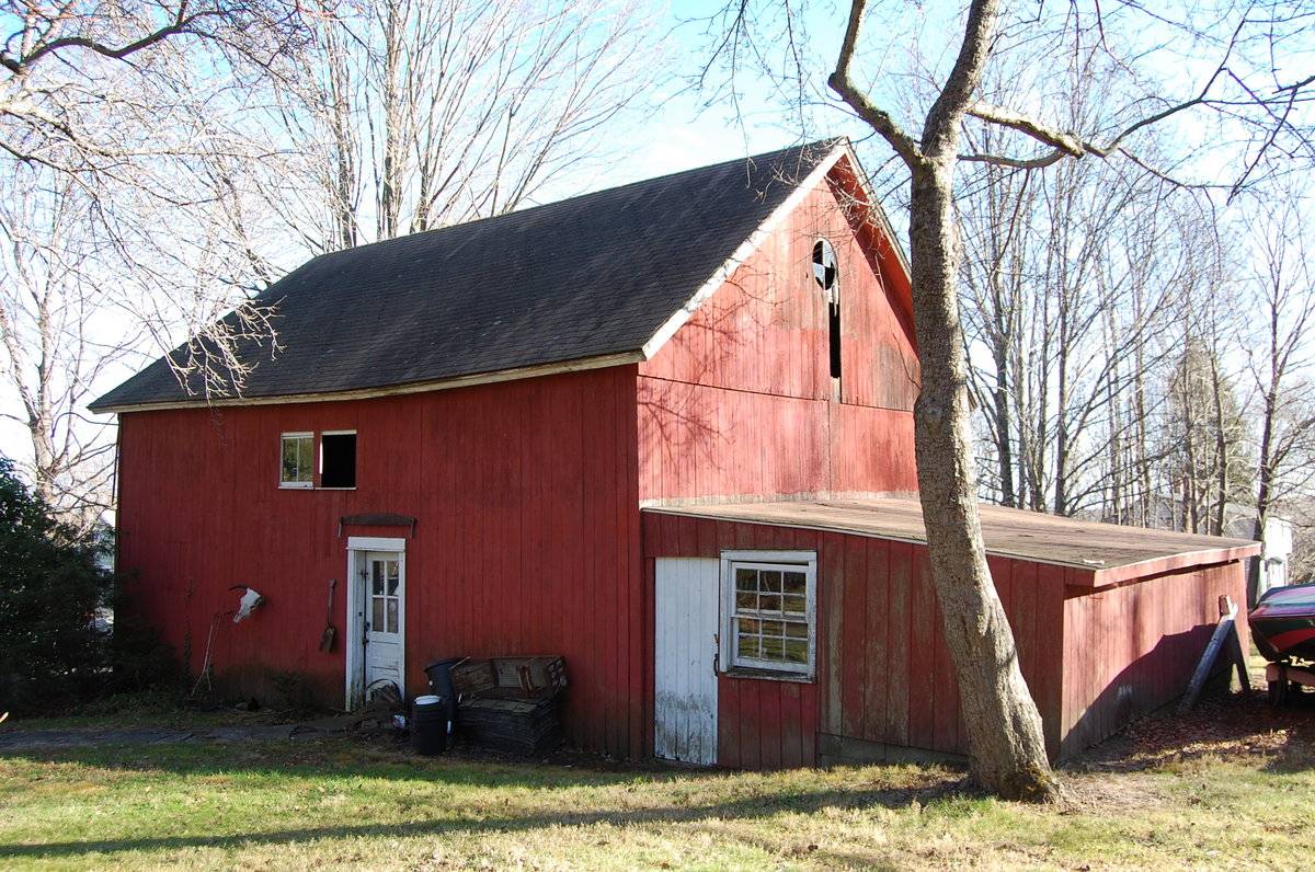 The oldest barns still found in the state are called the “English Barn,” “side-entry barn,” “eave entry,” or a 30 x 40. They are simple buildings with rectangular plan, pitched gable roof, and a door or doors located on one or both of the “eave” sides of the building based on the grain warehouses of the English colonists’ homeland. The New England barn or gable front barn was the successor to the English barn and relies on a gable entry rather than an entry under the eaves. The gable front offers many practical advantages. Roofs drain off the side, rather than flooding the dooryard. Although it was seen by many as an improvement over the earlier side entry English Barn, the New England barn did not replace its predecessor but rather coexisted with it. It this case, both an eave entry and a gable entry are used.