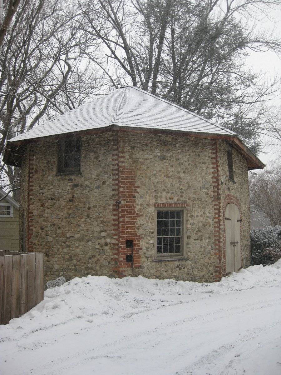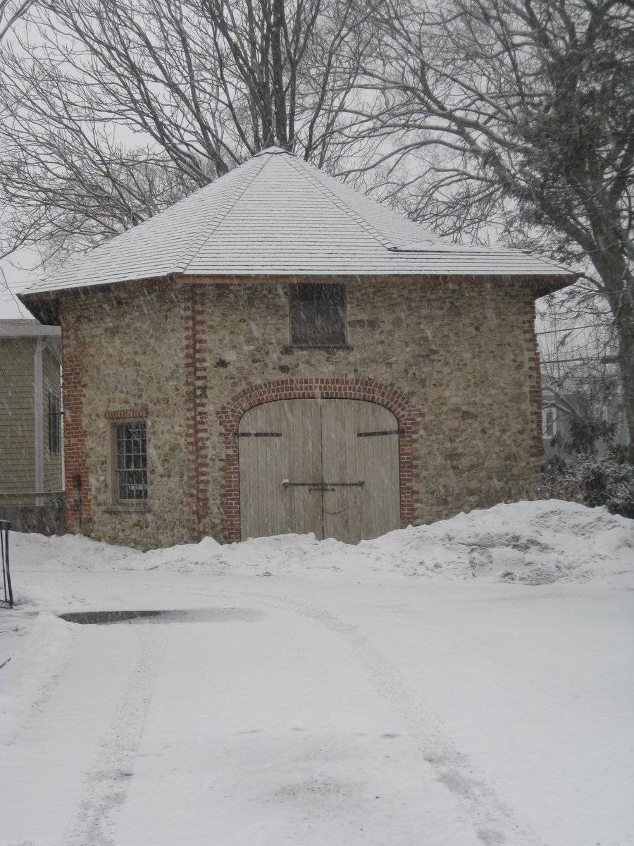 The circa 1846-1857 heptagonal base, 2-story stone barn, known officially as the “Bradley-Wheeler Barn Museum of Westport” is owned by the Westport Historical Society and is located on the same property near the downtown. The originally Federal, now Italianate style home, known as the “Coley-Bradley-Wheeler House” has a built date of 1795 and houses administrative offices, a museum, exhibit space, an archives/vault area, and educational instruction rooms for children. The barn’s construction is attributed to the owner, Farmin Patchin, who was also a stonemason and blacksmith. He flattened one side of the barn, removing the 8th façade, so that a rectangular, wood frame barn (no longer standing) could be joined. The barn is believed to be the only extant authentically restored heptagonal barn in the Northeast. All materials and fabrication methods are said to be original or replicated precisely. The mortar was chemically analyzed and reproduced and wood was imported from Holland for the rafters. Multiple views of the stone barn can be seen at http://www.westporthistory.org/museum. The barn is open to the public daily April 1 – Nov. 30 and by appt. through the Westport Historical Society 203-222-1424.