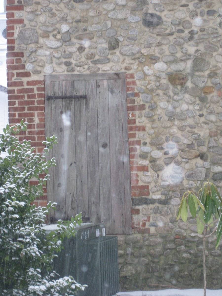 The heavy, second floor joists are set into the masonry and originally supported a loft for storage. The stairway to this floor was redesigned for safety but is similar and made of wood.