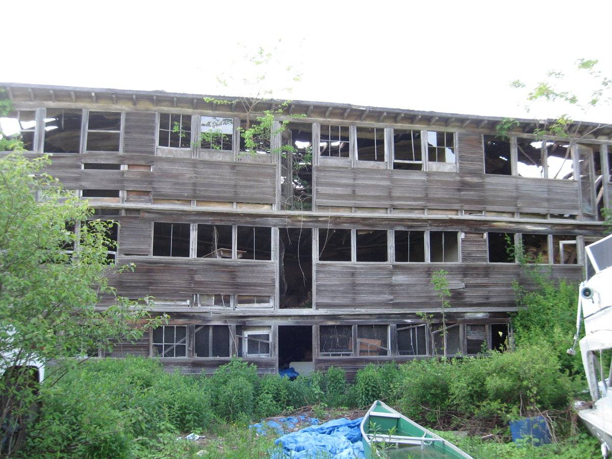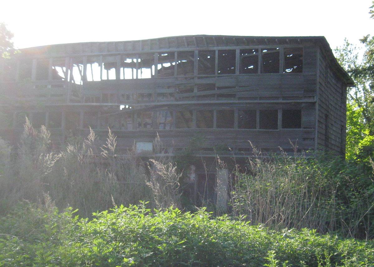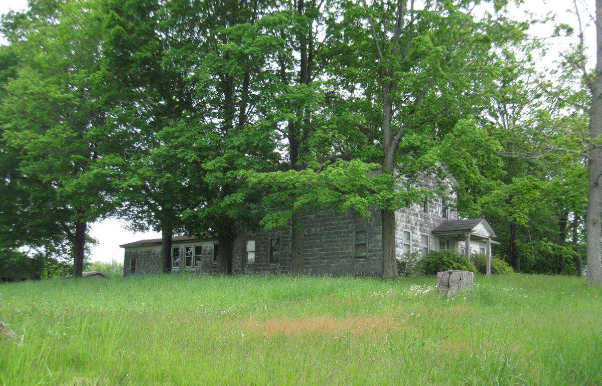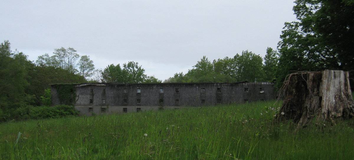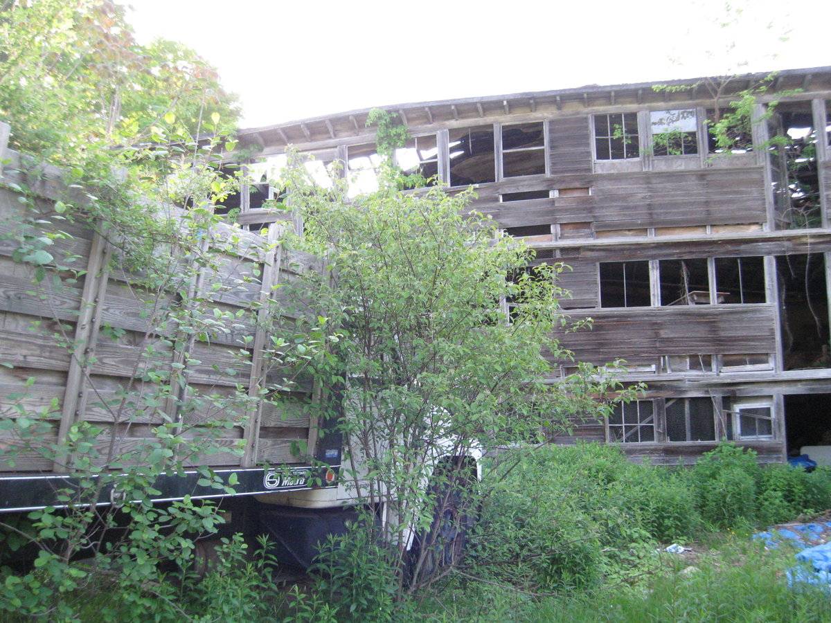 Brief interview with David Goffi - last time they raised chickens was in the 1940s. Crop wiped out by disease. Large 3-story chicken coop, roof collapsed, walls near to collapsing.
