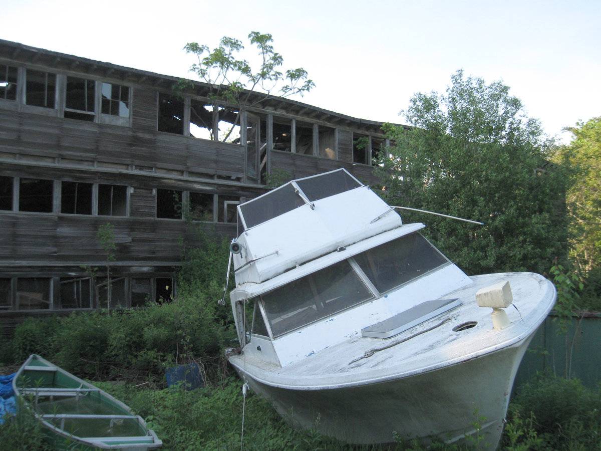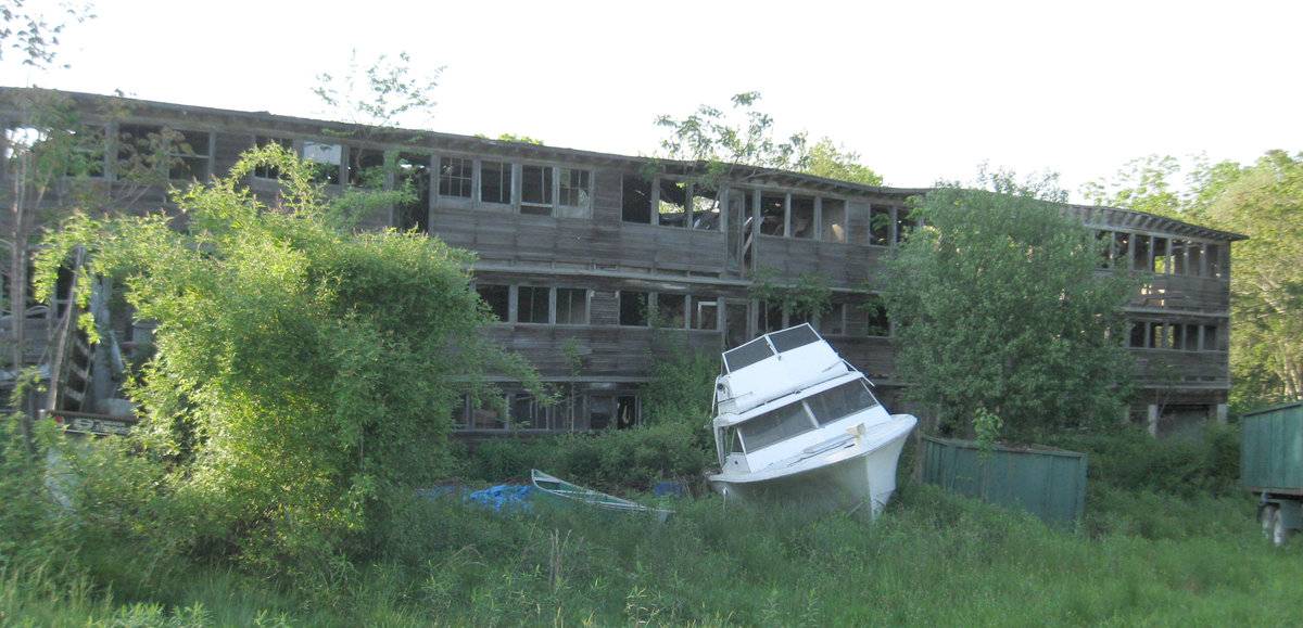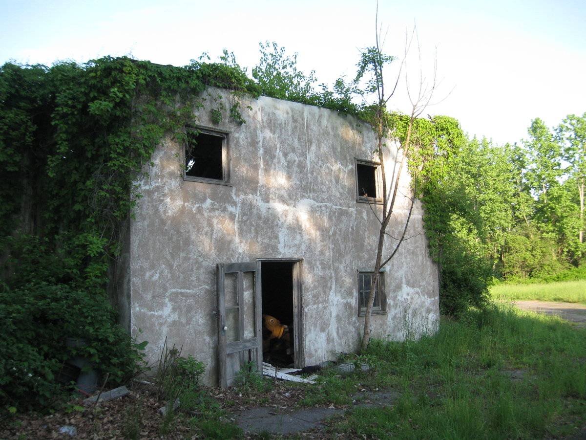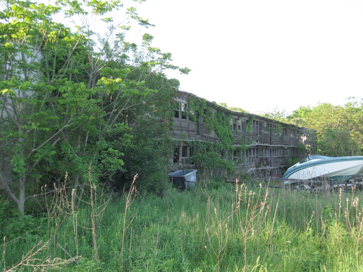 Brief interview with David Goffi - last time they raised chickens was in the 1940s. Crop wiped out by disease. Large 3-story chicken coop, roof collapsed, walls near to collapsing.