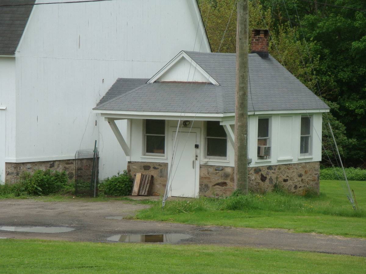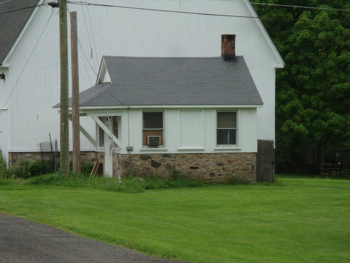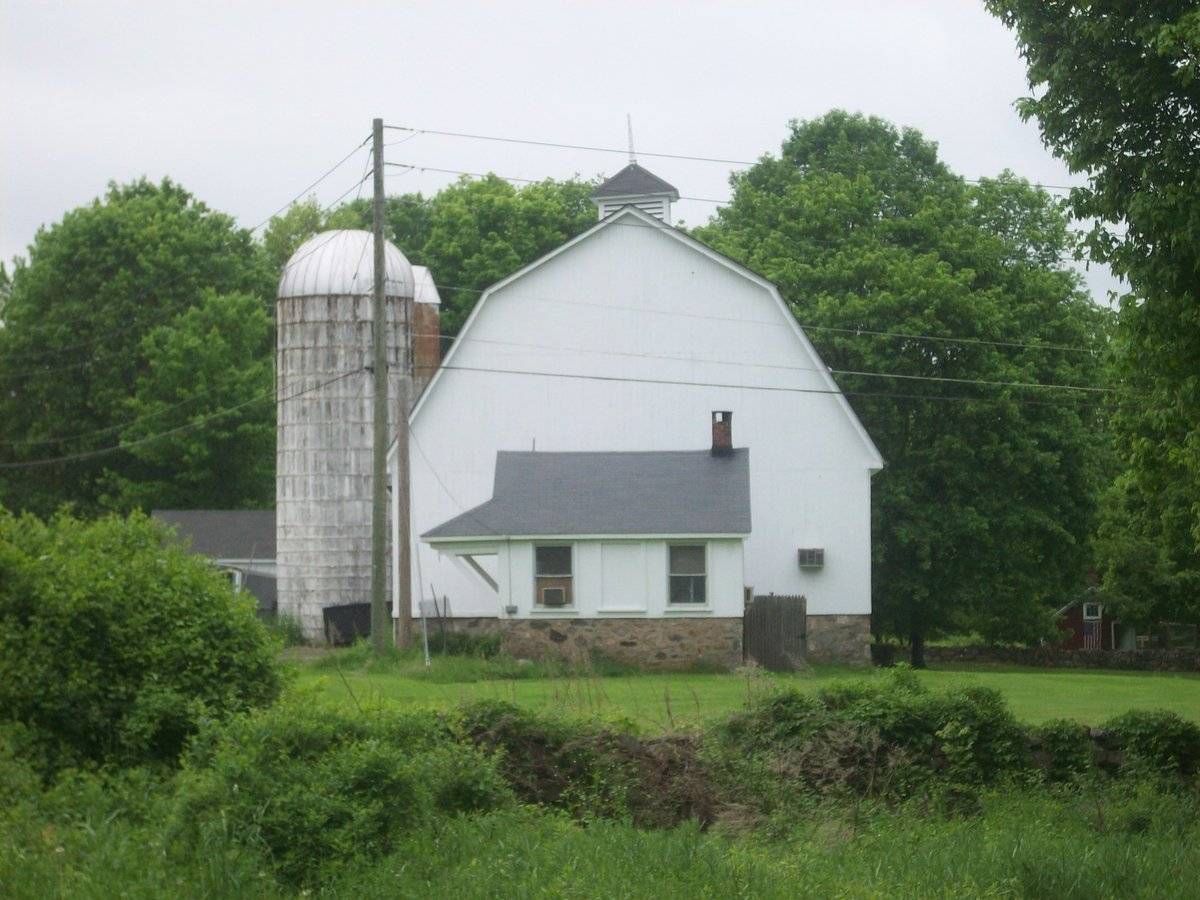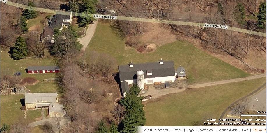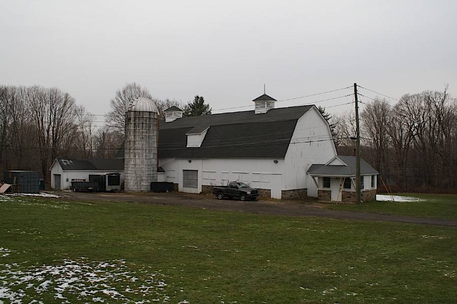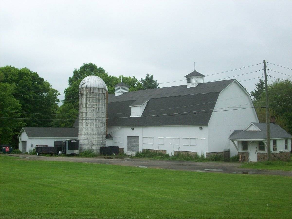 Adjacent to Farmingville Elementary Barn built by Louis Morris Starr, for Ontaroga Farm dairy; later used by Walnut Grove Dairy until 1950. Now maintenance facility for adjacent Farmingville Elementary School. To south of barn, a horse shed and corn crib (see aerial view). Another dairy barn to south has been converted to a residence, under separate ownership. See Jones, p. 259-264.